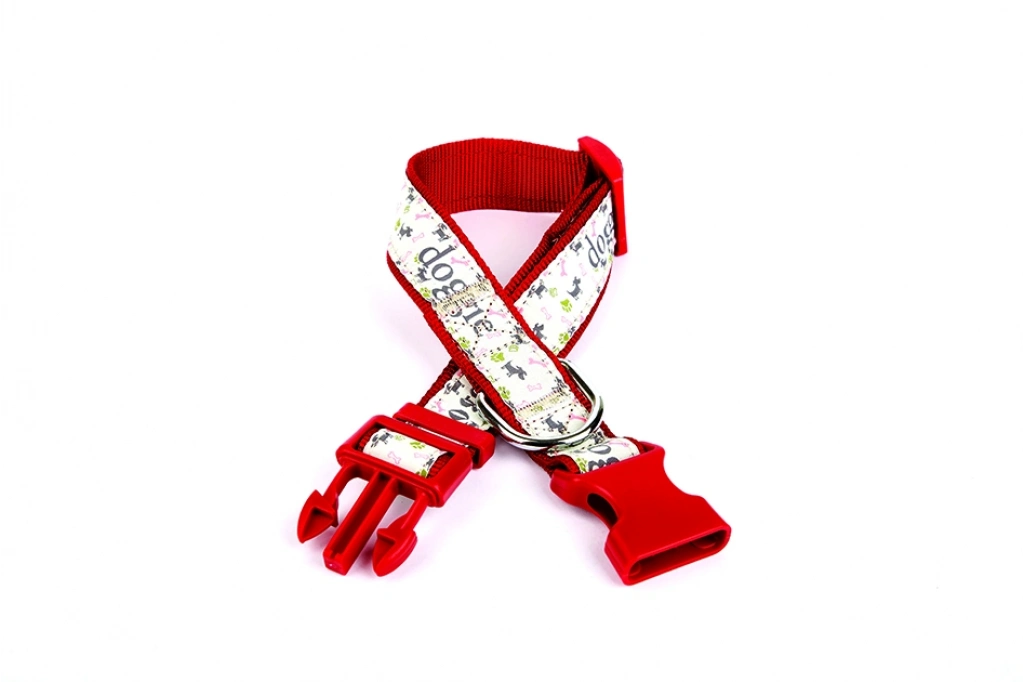 Doggie Köpek ve Pati Desenli Dokuma Köpek Boyun Tasması 3 cm x 36-60 cm Kırmızı