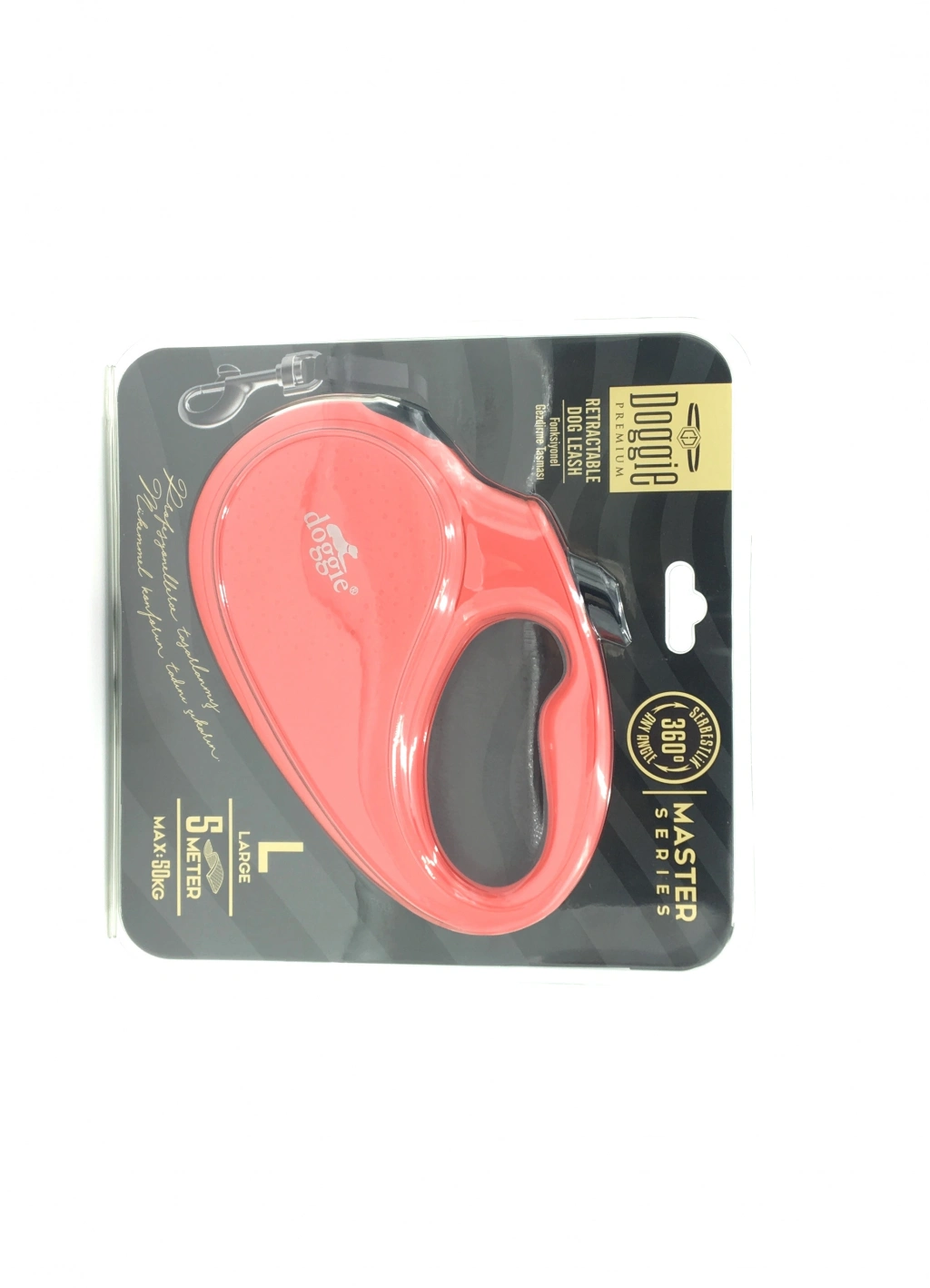 Doggie Master Seri Otomatik Makaralı Köpek Gezdirme 50 kg / 5 M Pembe 5 metreye kadar uzayabilen, 50 kg a kadar olan kedi ve köpekler için uygundur. Makara sistemi ÇELİKTİR. Master Serisi otomatik gezdirme tasmaları klasik görünümde uzun ömürlü sağlam malzemelerden üretilmiştir. SERBEST DOLAŞMA Tasmanın ucunu tutun, başparmağınızla butona basın, bu sayede tasmanın ipi kolayca serbest bırakılabilir ve geri sarılabilir, artık köpeğiniz serbest dolaşmanın tadını çıkarabilir. SERBEST HAREKETİ DURDUR/İZİN VER Tasmanın ucunu tutun ve istediğiniz zaman başparmağınızla tuşa basın, böylece hızlı bir şekilde köpeğinizin serbest hareketine ara verebilir ve istediğiniz zaman tekrar devam ettirebilirsiniz. TASMA İPİNİ İSTEDİĞİNİZ UZUNLUKTA AYARLAMA Tasmanın ucundan tutun ve kilitleme tuşuna basarken aynı anda tasmanın üstündeki butona basın. Bu şekilde ipin uzunluğunu istediğiniz şekilde ayarlayabileceksiniz. Bunu yaptığınızda ip uzunluğu artmaz veya azalmaz ve köpeğiniz sabit bir yere kadar hareket edebilir. MESAFEYİ KISALTMA Tasmanın ucundan tutun, yukarıda yer alan butonu ileri itin serbest bırakma tuşuna basın ve butonu geri çekin, tuşu serbest bırakın. Böylece tasmanın ipi otomatik olarak toplanacaktır. Butonu tekrar ileri itin, yukarıdaki adımları tekrarlayın. Bu şekilde köpeğinizle aranızdaki mesafeyi aşamalı olarak kısaltabilirsiniz Uyarı Tasma sadece elinizde tutarak köpeğinizle yürümek içindir, başka amaçlarla kullanmayınız. Çocukların tasmayı kullanmaları yasaktır. Yaralanmalardan kaçınmak için, tasmanın ipini asla kolunuza, vücudunuza veya köpeğinize dolamayın. Her kullanımdan önce tasmanın zarar görmediğinden emin olun, hasarlı veya aşınmış durumdayken tasmayı kullanmayı bırakın. Tasma sadece ambalajında belirtilen ağırlıklardaki köpekler için kullanılmalıdır. Daha ağır köpekler için kullanmayın.