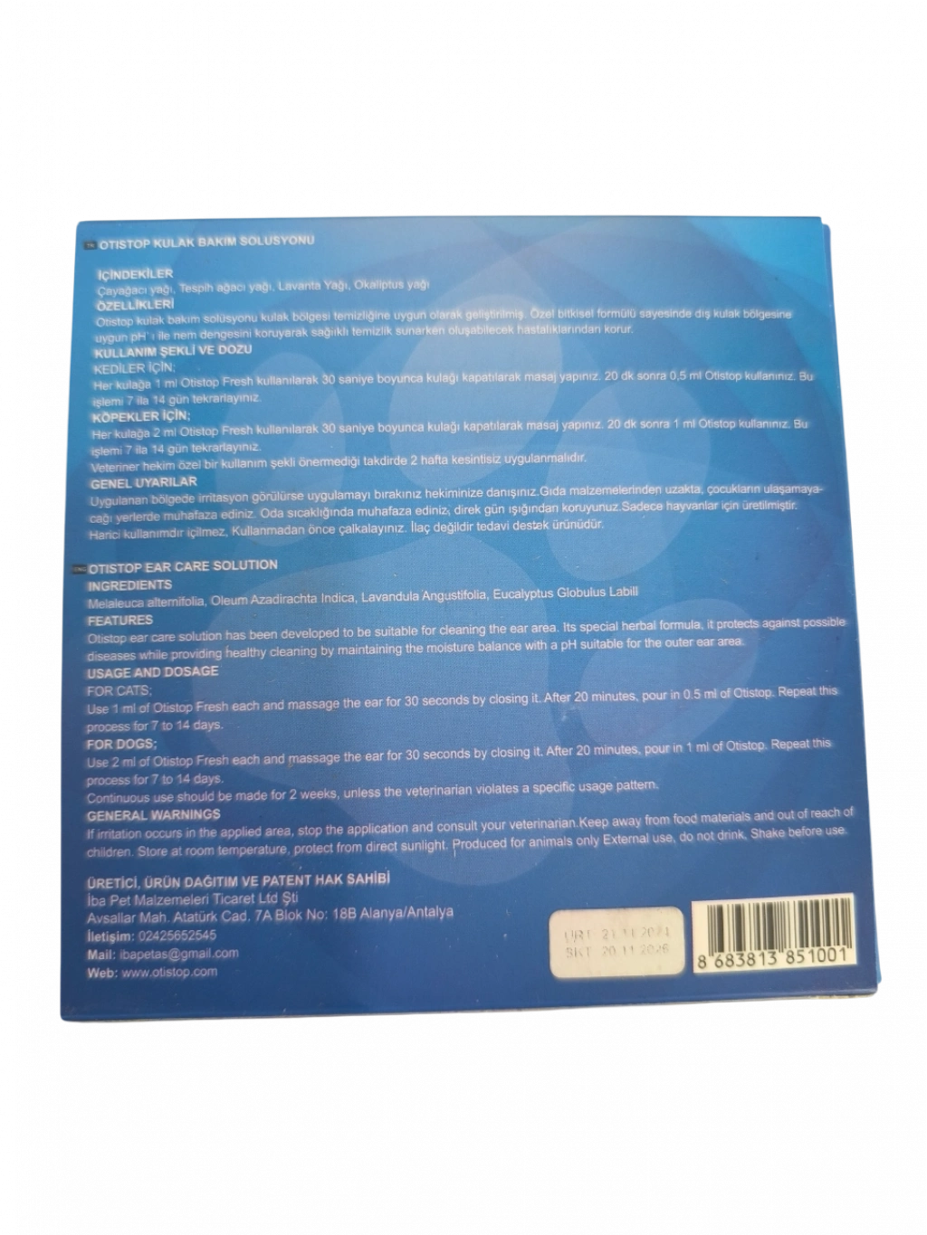 Otistop Kedi Köpek Kulak Uyuzu Bakım Losyonu 30 ml + 30 ml - 13158 - - Otistop Kedi Köpek Kulak Uyuzu Bakım Losyonu 30 ml + 30 ml EROTISTOP KULAK BAKIM SOLUSYONUİÇİNDEKİLERÇayağacı yağı, Tespih ağacı yağı, Lavanta Yağı, Okaliptus yağıÖZELLİKLERİOti