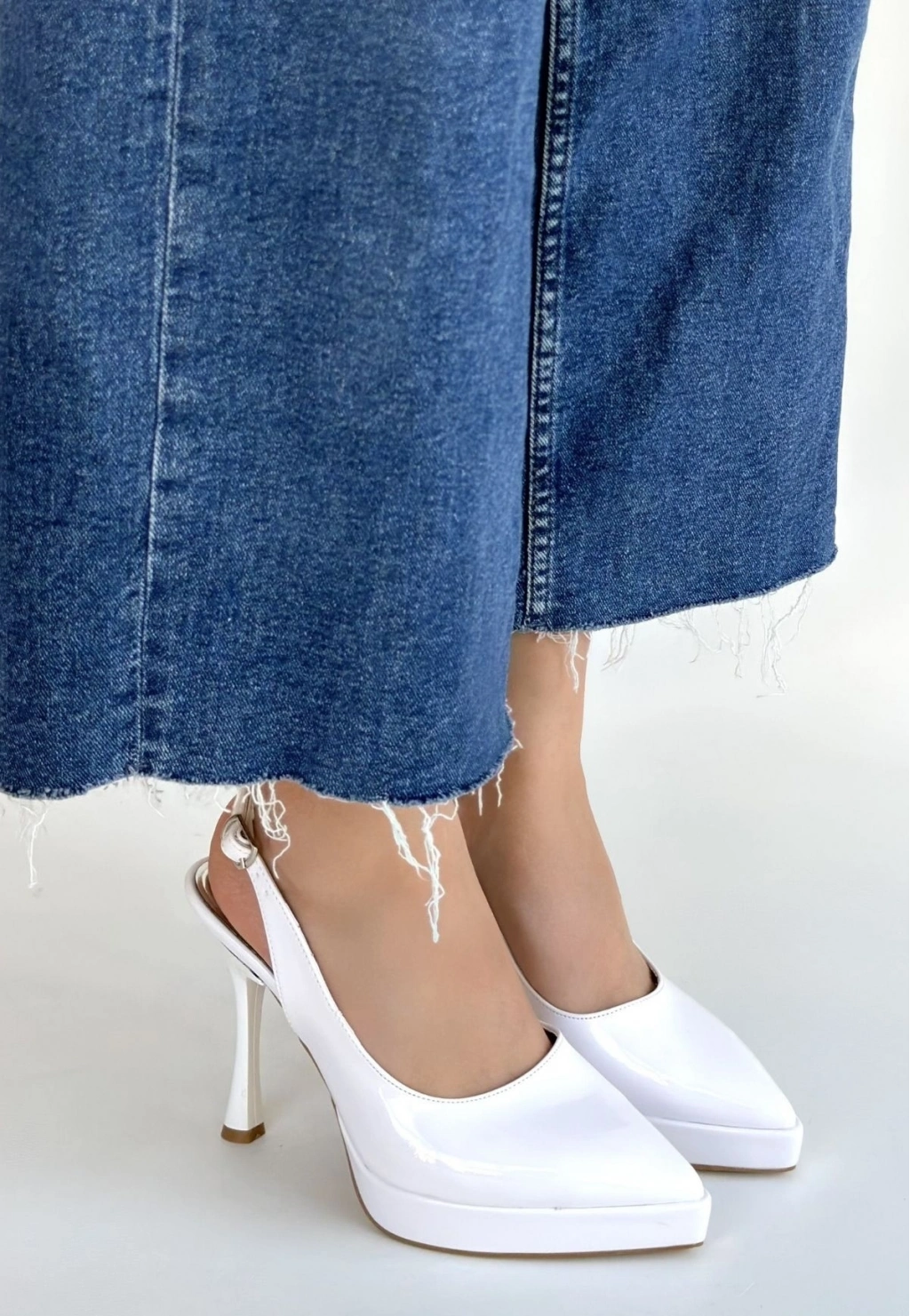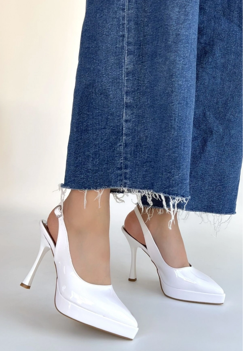Arim Beyaz Rugan Platform Topuk Ayakkabı