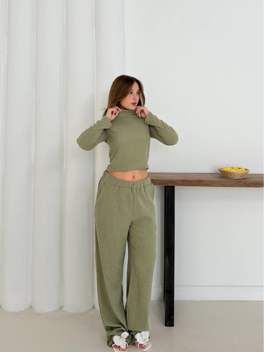 Günlük şıklığınızı tamamlayacak Balıkçı Yaka Örme Takım Mint, tarzınıza modern bir dokunuş katacak!