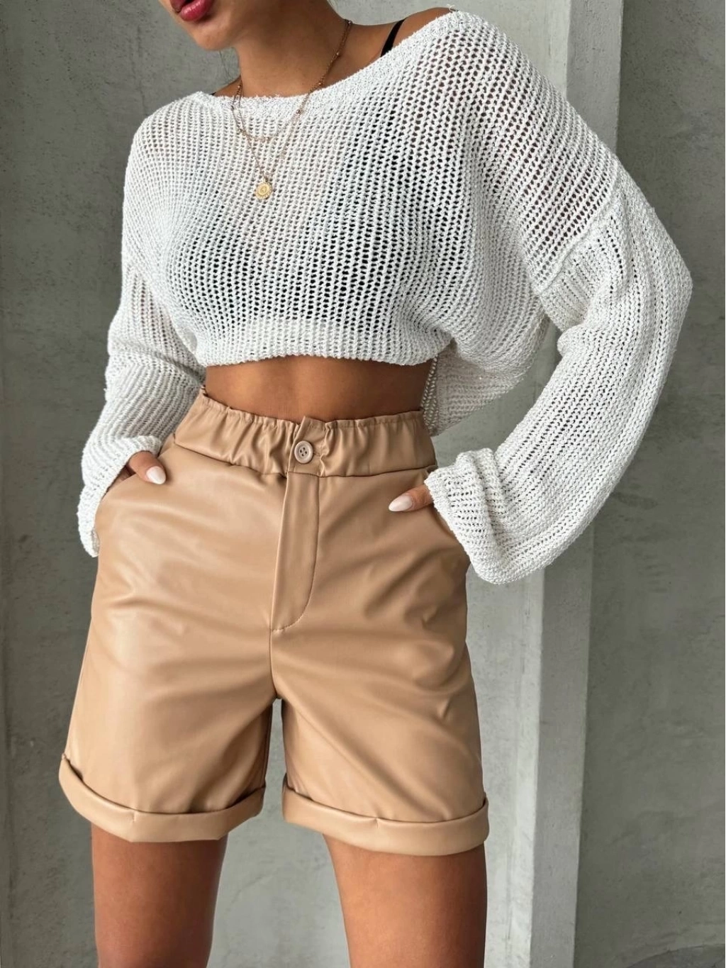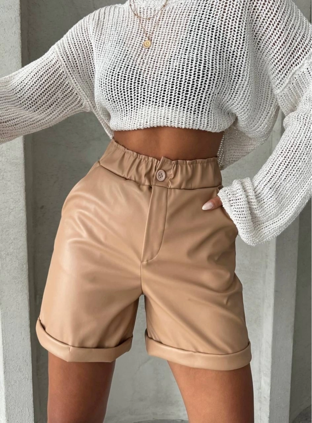 Beli lastikli duble paça deri şort bej w24755, şık ve rahat tasarımıyla öne çıkıyor. İster günlük şıklıkta kullanın, ister özel bir davette. İşte ürünün özellikleri: