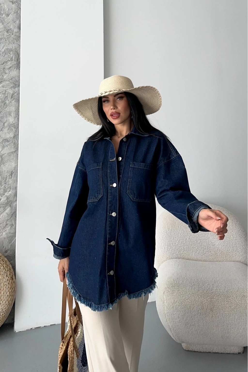 Cepli püsküllü kar yıkama kot ceket koyu mavi D2515, şıklığı ve rahatlığı bir arada sunar. Hem günlük hayatta hem de özel günlerde tercih edebileceğiniz bu ceket, gardırobunuzun vazgeçilmezi olmaya aday.