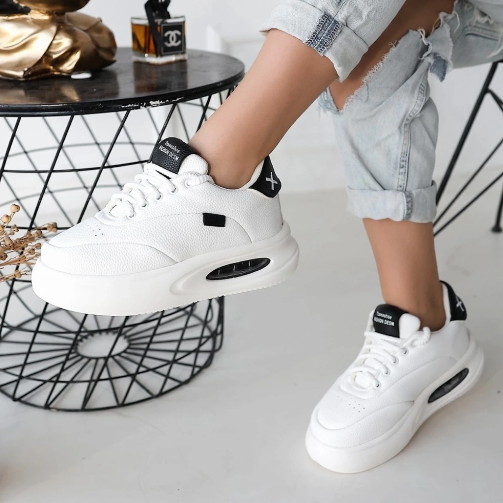 Chris Beyaz Cilt Siyah Detaylı Bağcıklı Spor Ayakkabı