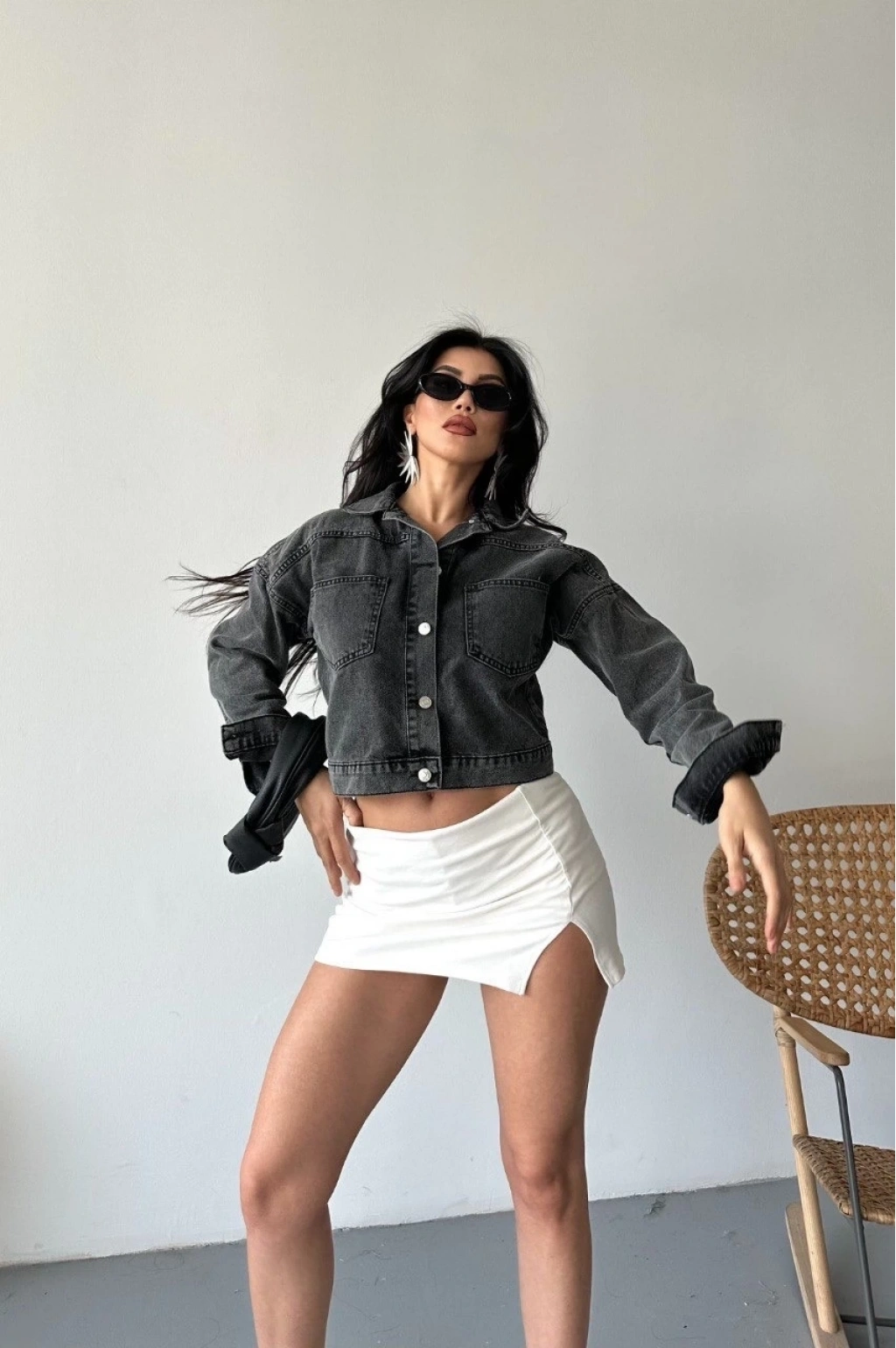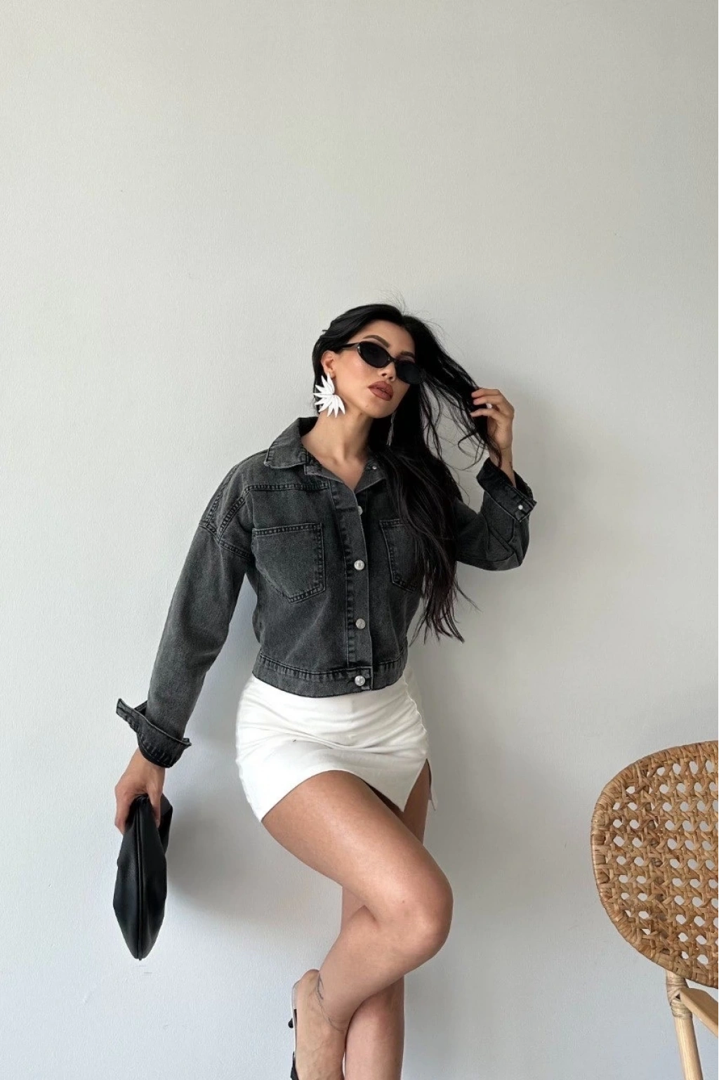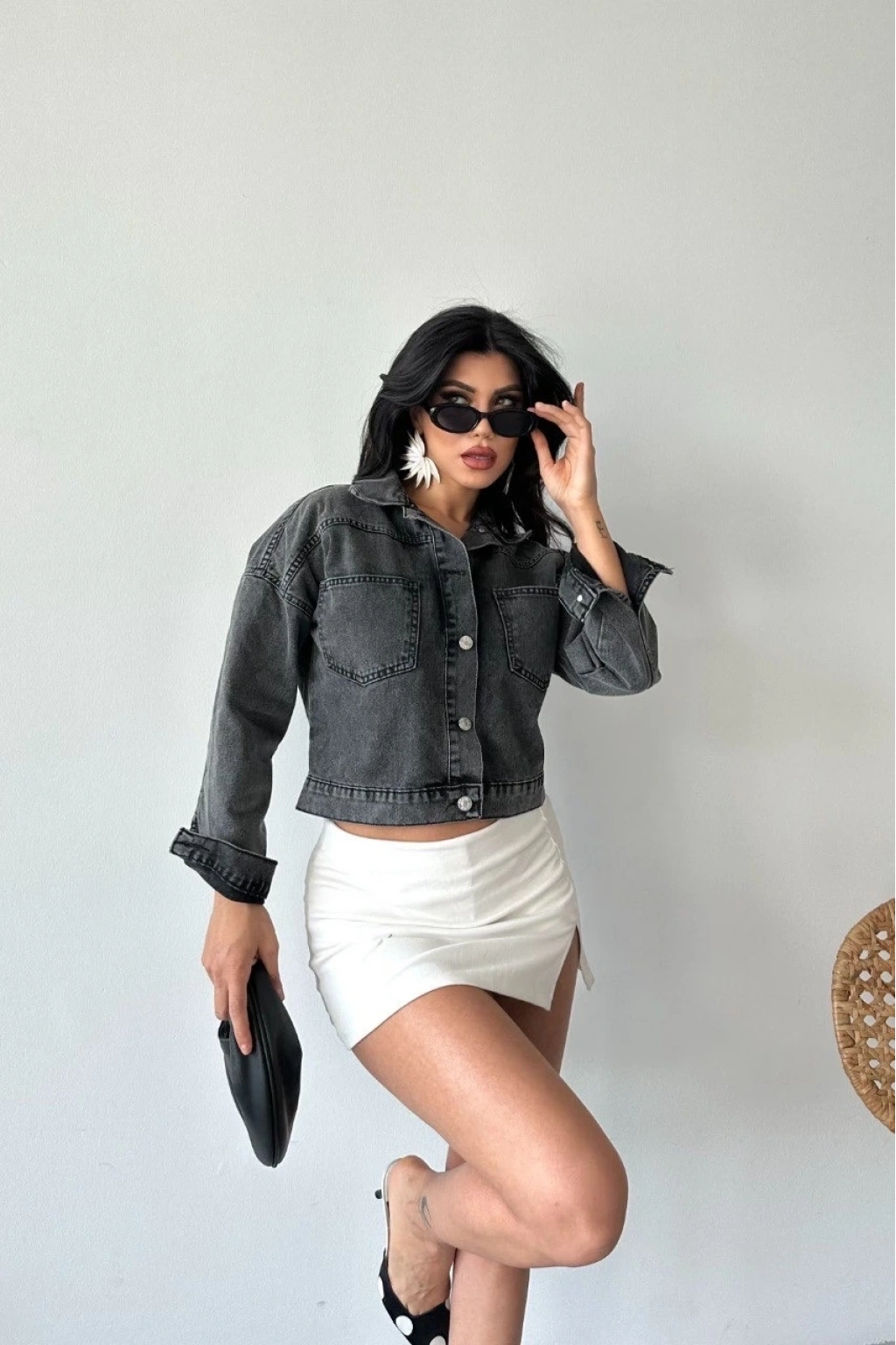 Şıklığı ve rahatlığı bir arada sunan bu crop kot ceketi kıyafet kombinlerinizin vazgeçilmez parçası haline getirebilirsiniz.