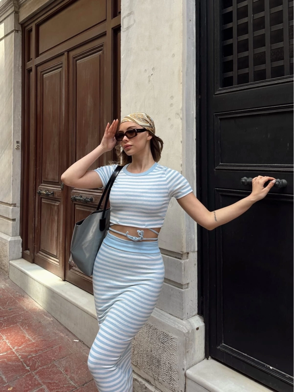 • Şık ve modern bir tasarıma sahip olan S36 çizgili etekli takım, zarif detaylarıyla dikkat çekiyor.