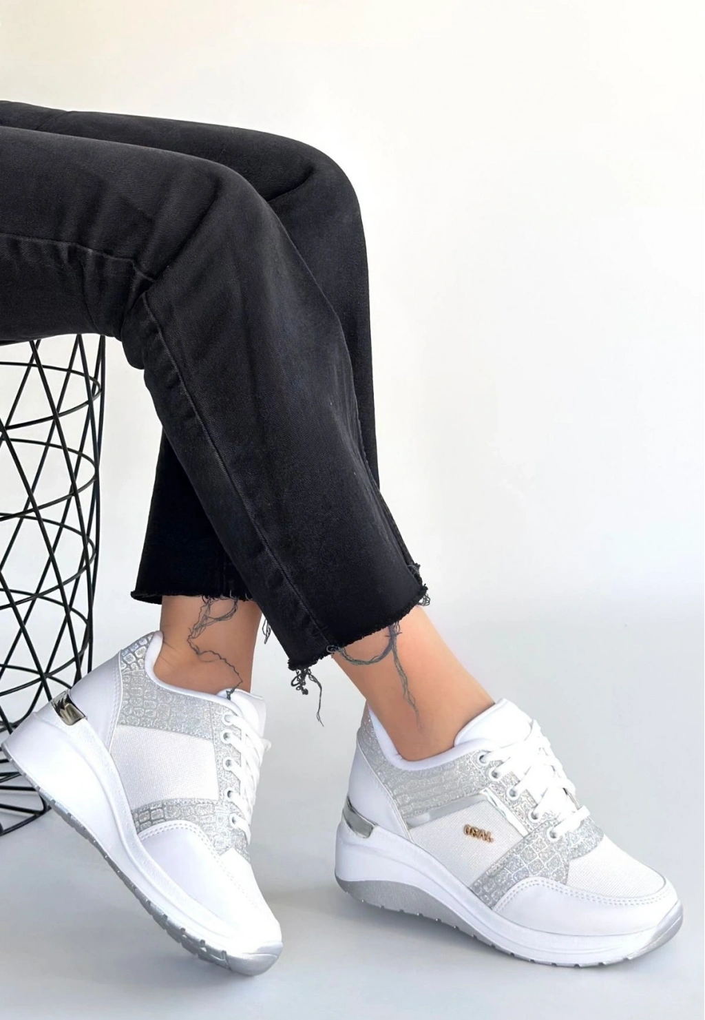 Geja Beyaz Cilt Bağcıklı Spor Ayakkabı