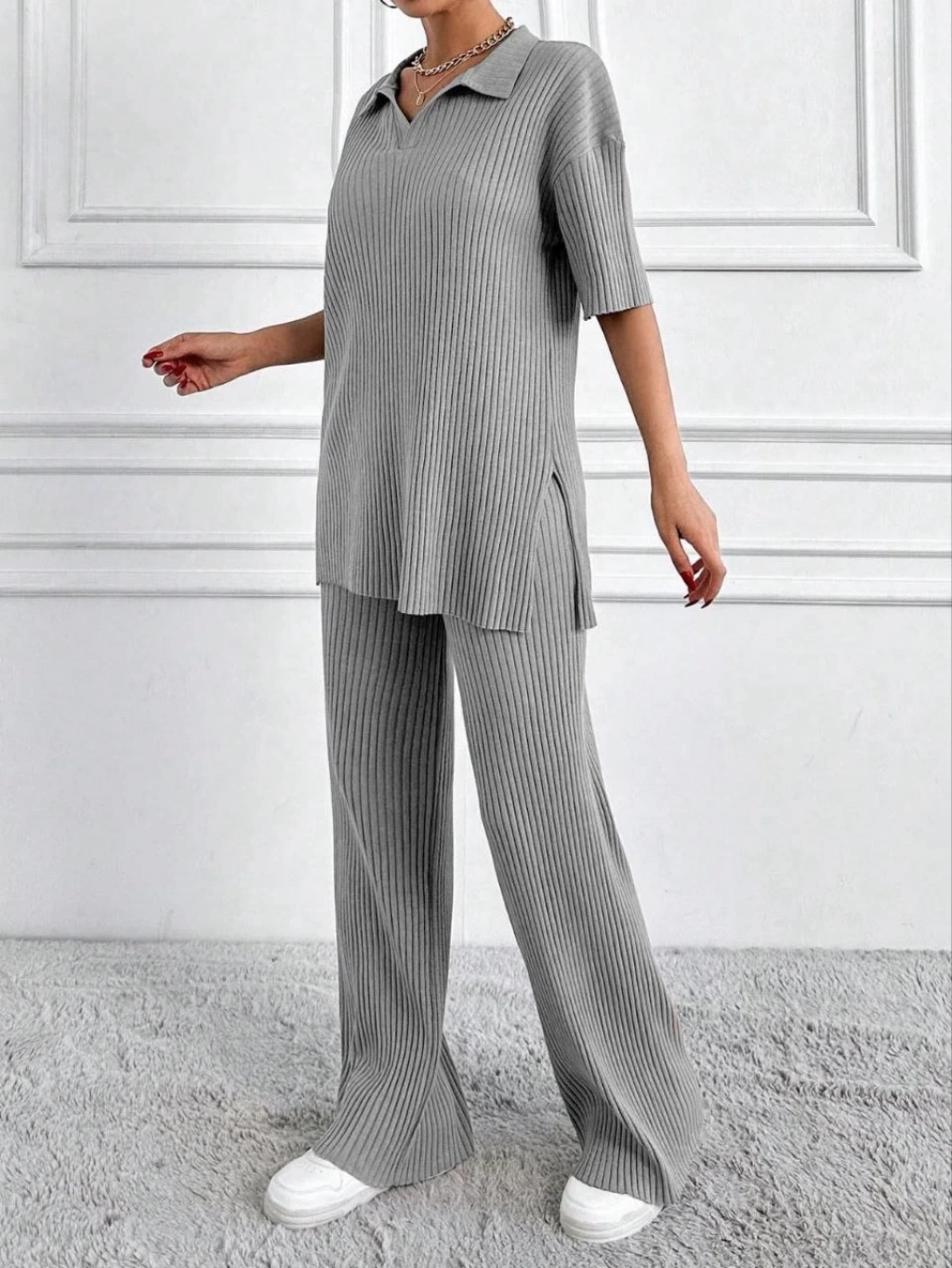 Geniş fitilli polo yaka kısa kol takımı, şıklık arayan kadınların gardırobunda vazgeçilmez bir parça olmaya aday!