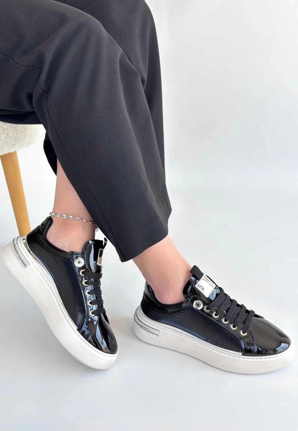 TAVSİYE EDİLEN GÜVENLİ SATICI Hley Siyah Rugan Paraşüt Detaylı Bağcıklı Spor Ayakkabı