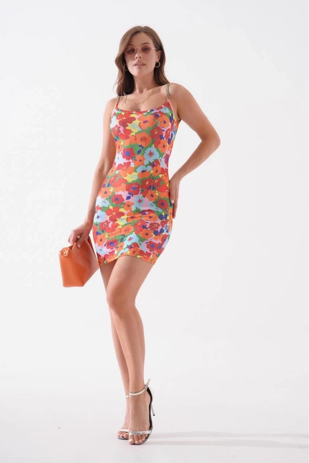 S8105 modeli ince askılı desenli elbise, özgün tasarımı ile şıklığı ve konforu bir arada sunuyor.