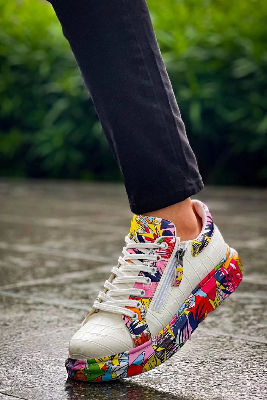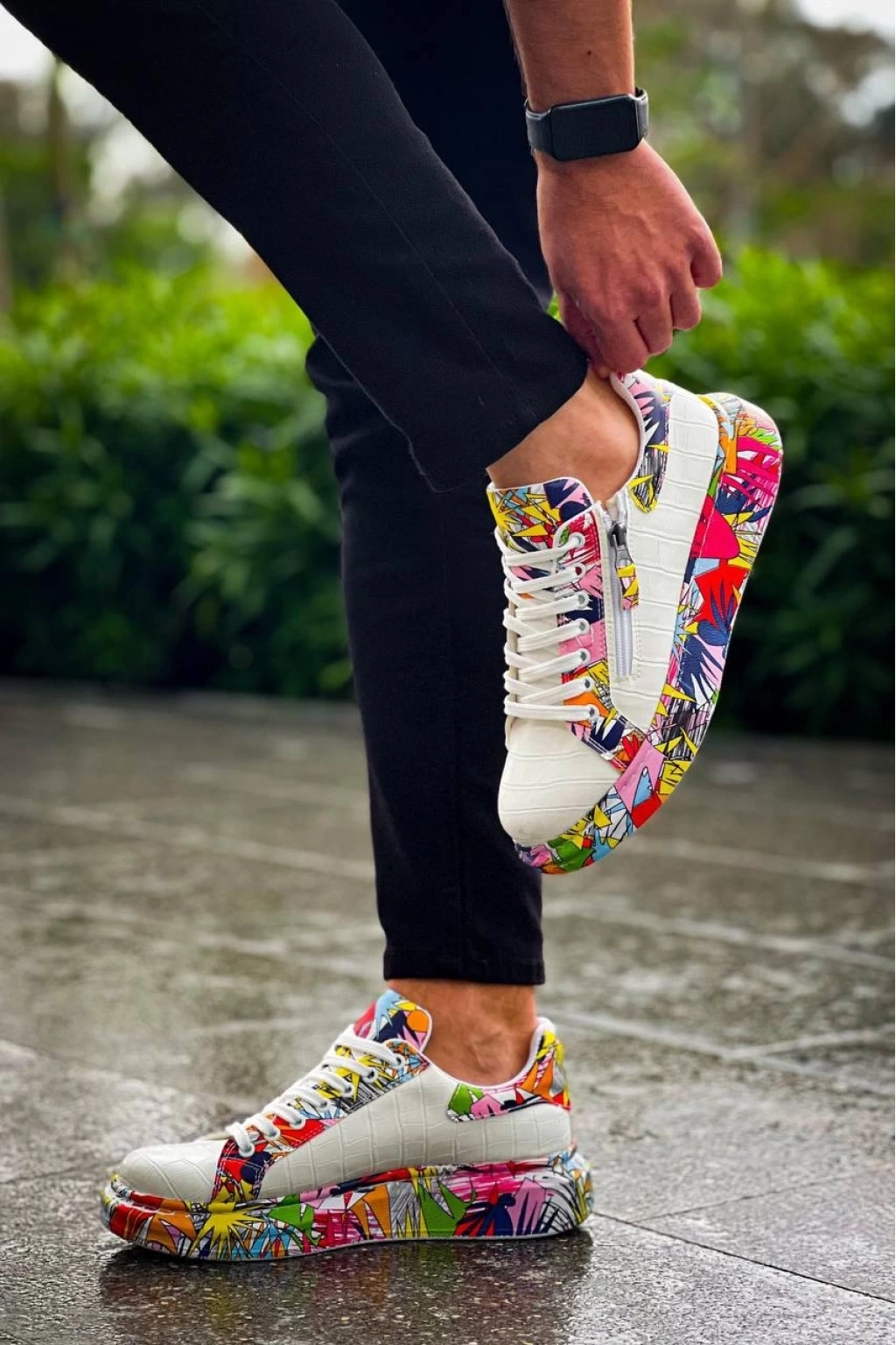KB-02 Bağcıklı Crocodile Beyaz Kırmızı Günlük Erkek Ayakkabı