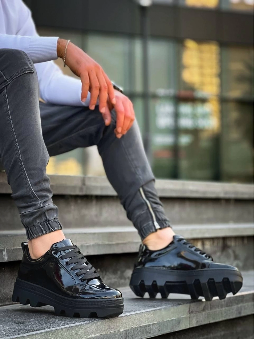 KB-056 Siyah Rugan Siyah Yüksek Taban Günlük Spor Ayakkabı