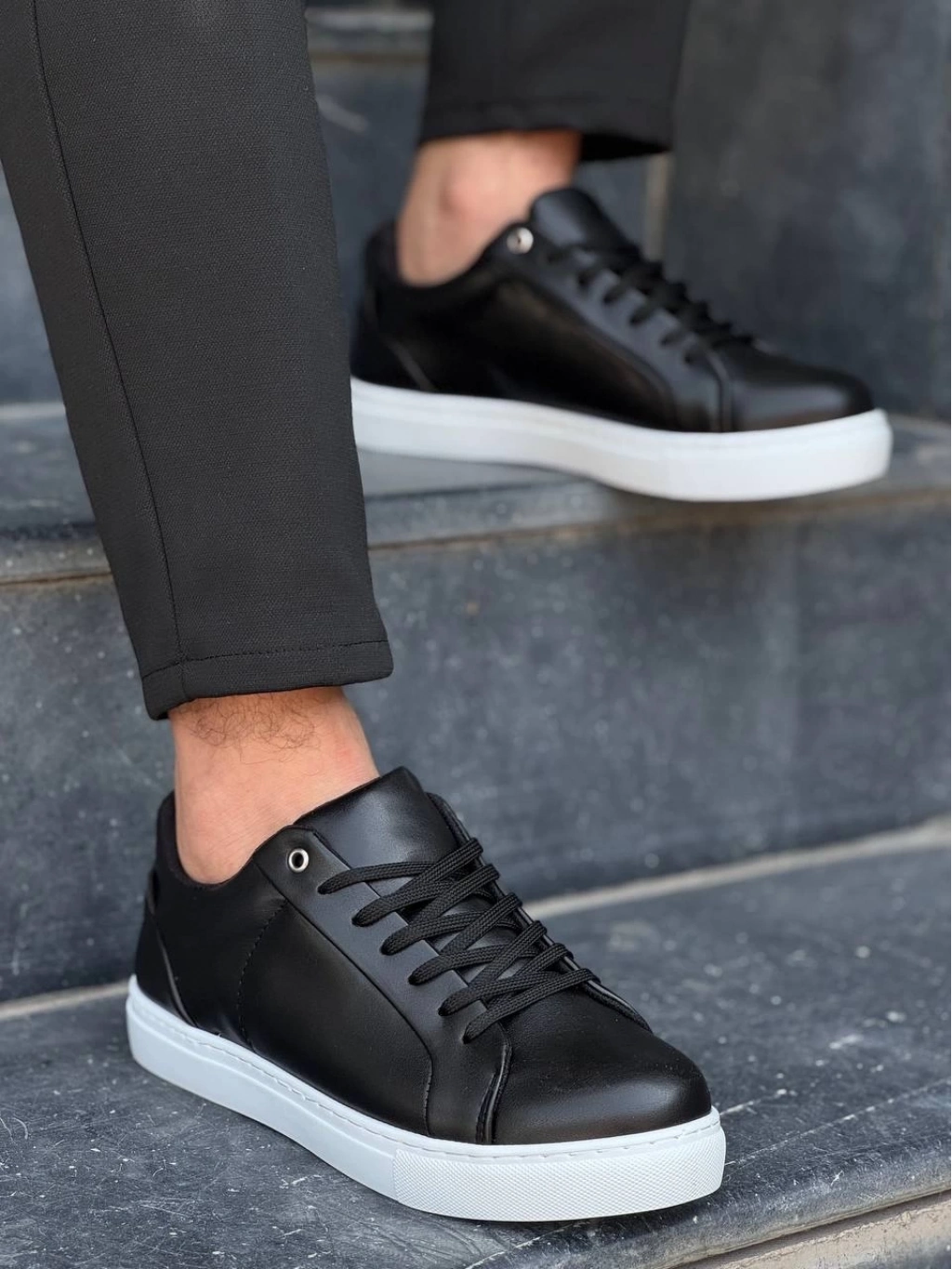 KB-BX1 Siyah Cilt Yüksek Beyaz Taban Günlük Erkek Ayakkabı