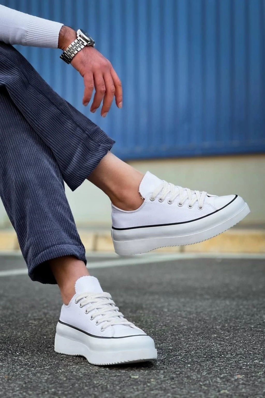 TAVSİYE EDİLEN GÜVENLİ SATICI KB-CX-3 Kuback Kısa Beyaz Keten Beyaz Yüksek Taban Spor Ayakkabı