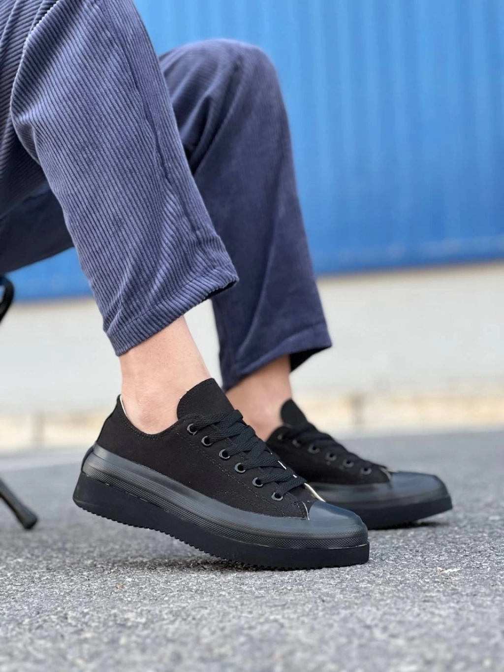 • KB-CX-3 Kuback Kısa Siyah Keten Siyah Yüksek Taban Spor Ayakkabı