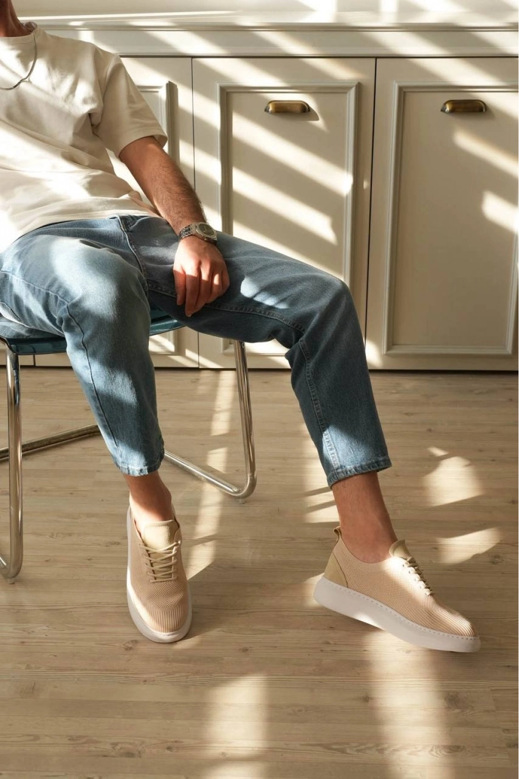 KB-M101 Bej Triko Bağcıklı Günlük Erkek Ayakkabı