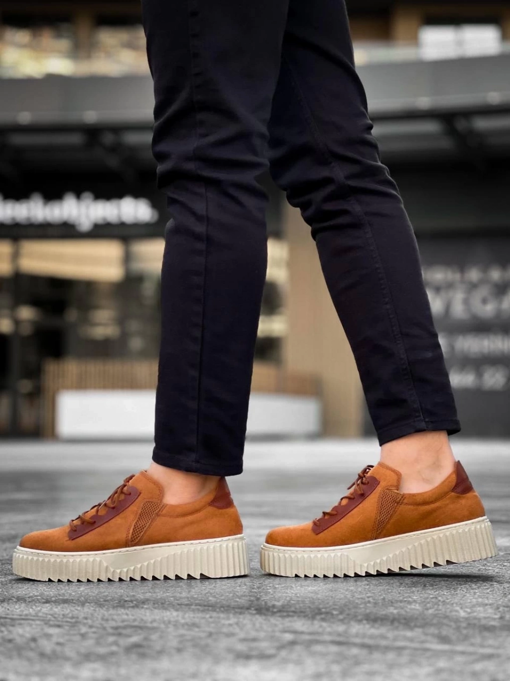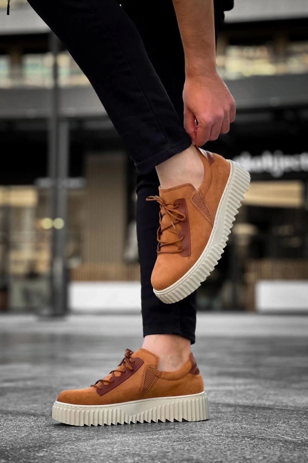 TAVSİYE EDİLEN GÜVENLİ SATICI KB-X502 Kuback Taba Süet Yüksek Bej Taban Bağcık Detaylı Lastikli Günlük Erkek Ayakkabı