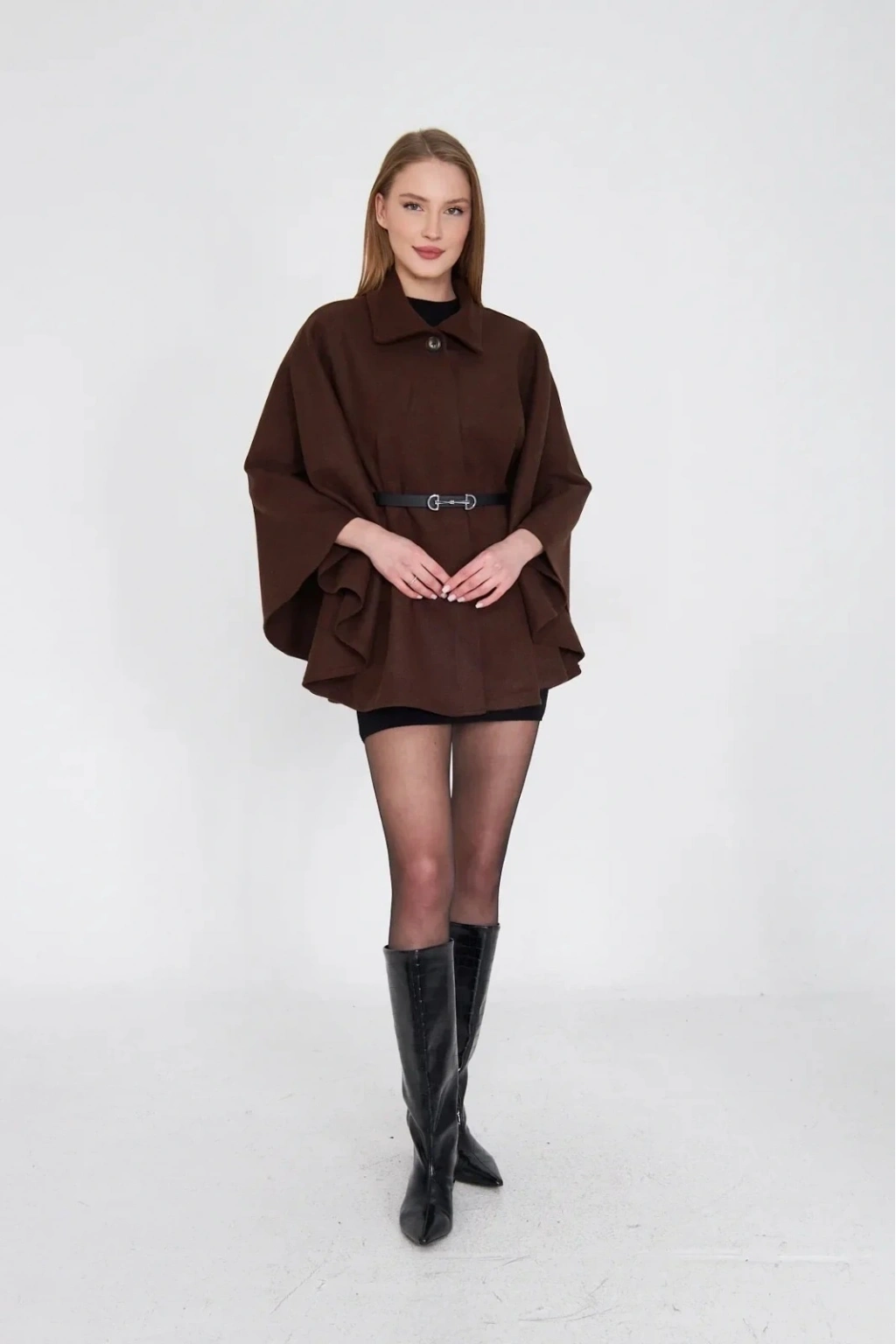 Kemerli kaşe panço kahve pt