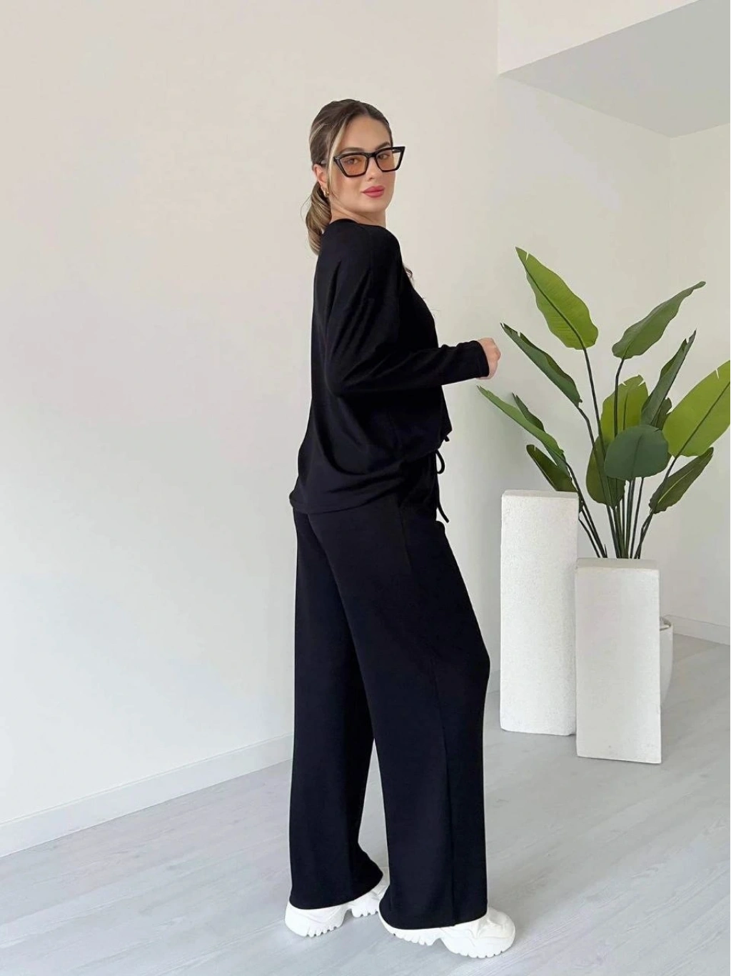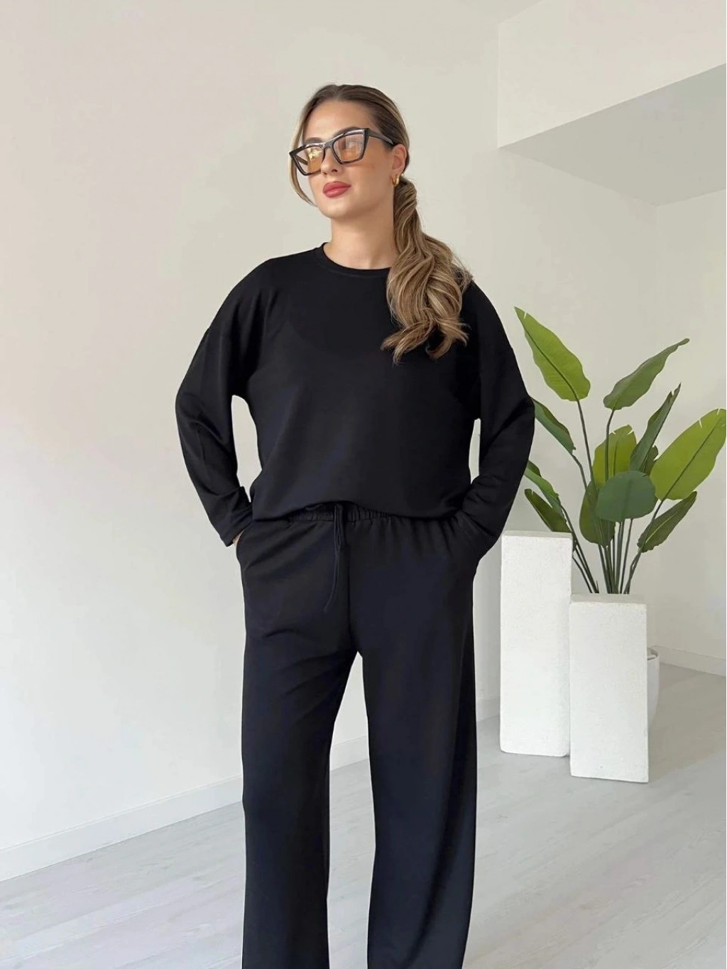 şık ve rahat tasarımıyla öne çıkan Siyah Kollu Modal Takım, kadın giyim koleksiyonunda yerini alıyor.