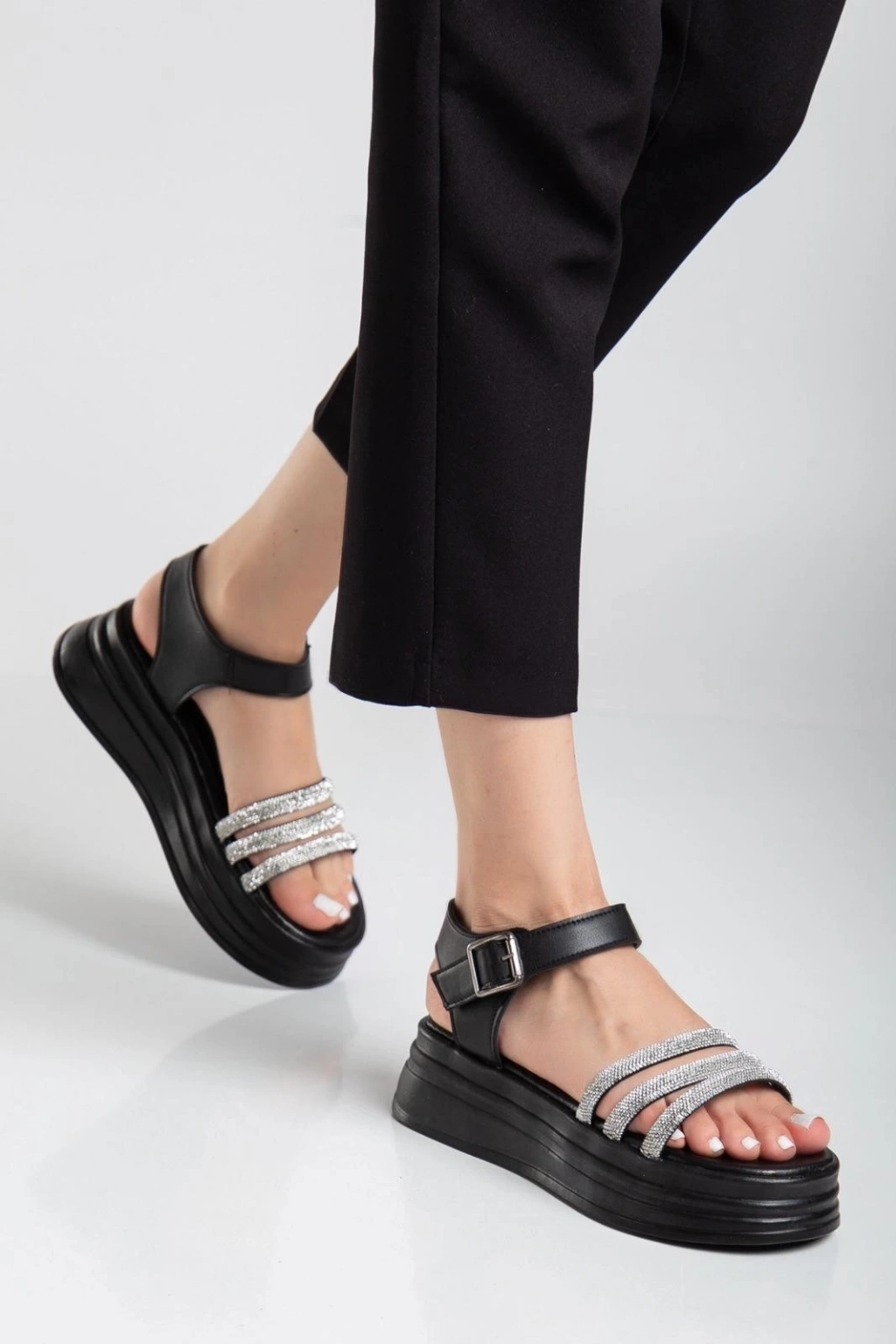 TAVSİYE EDİLEN GÜVENLİ SATICI Lalen Siyah Kemerli Sandalet