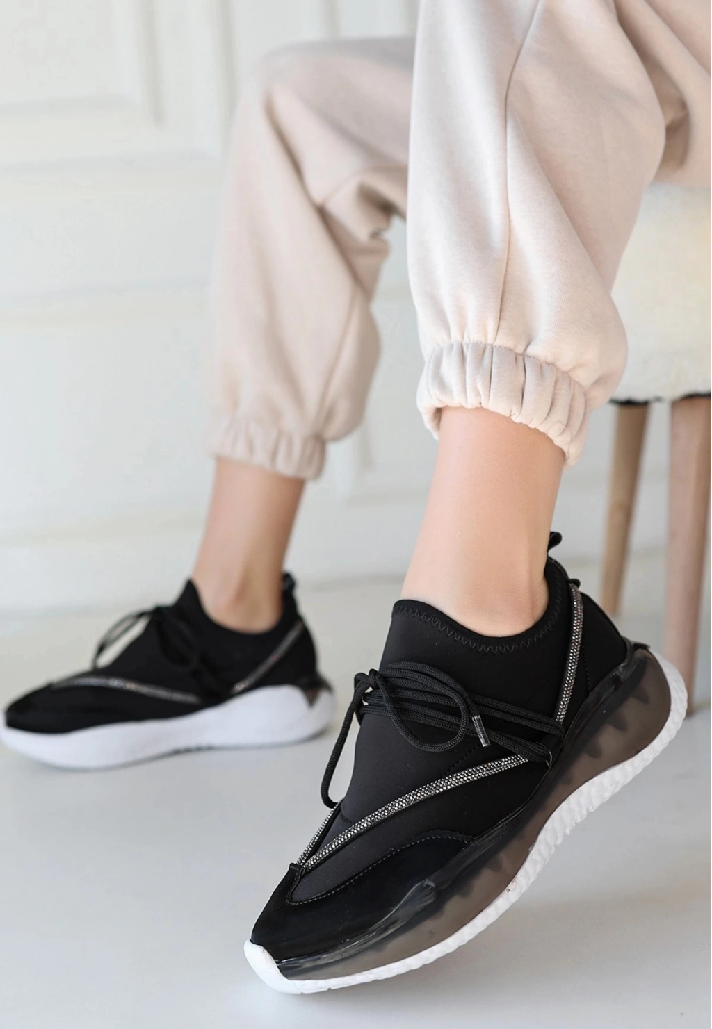 Liney Siyah Rugan Bağcıklı Spor Ayakkabı