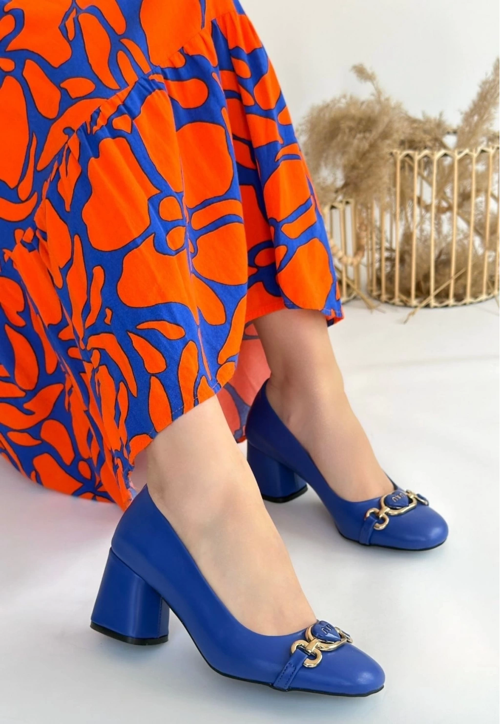 Lucky Mavi Cilt Topuklu Ayakkabı