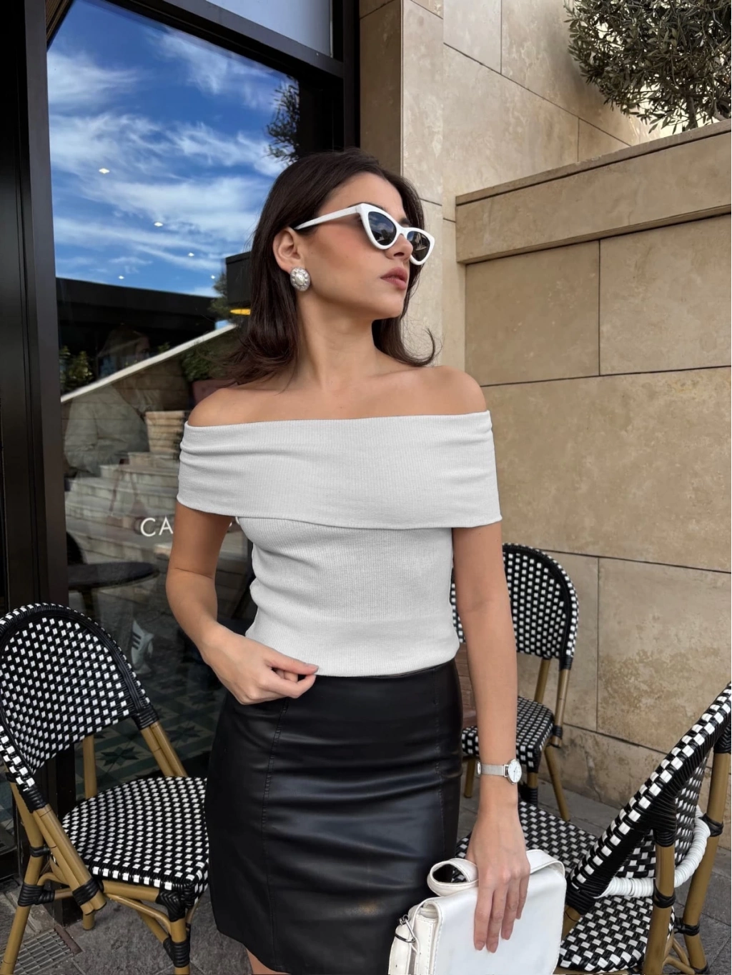 • Madonna yaka detayı ile şıklığı ön plana çıkarır.
