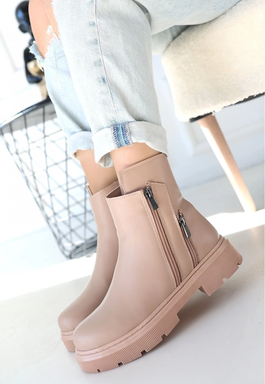 Menta Nude Cilt Fermuar Aksesuarlı Bot