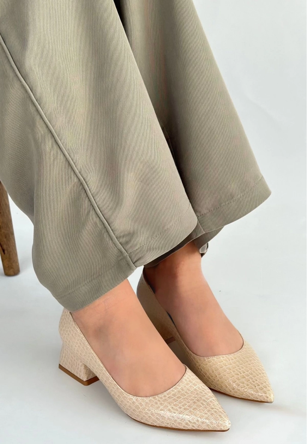 Meort Bej Rugan Topuklu Ayakkabı