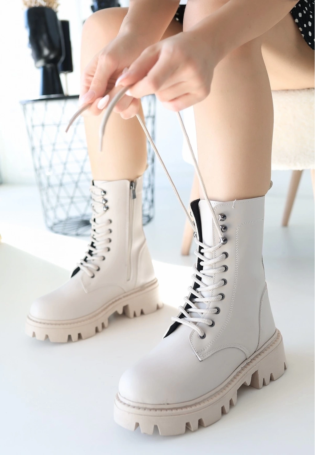 Neole Bej Cilt Bağcıklı Bot