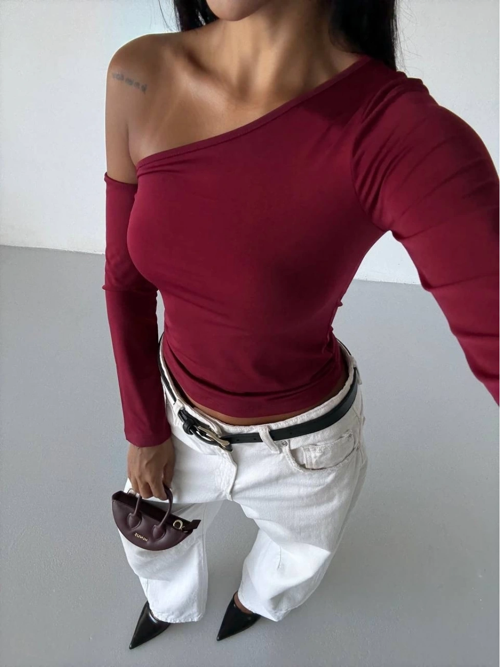 Omuz detaylı kollu bluz bordo F2336, trendy ve şık bir görünüm sunar.