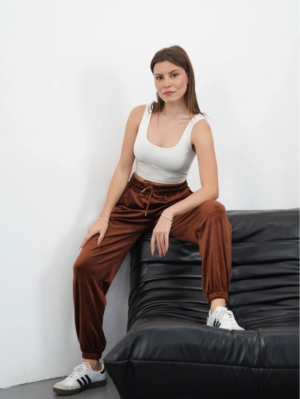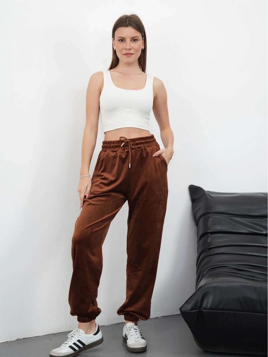 Paça lastikli kadife eşofman, şıklığı ve rahatlığı bir arada sunuyor. MD34 markasıyla tasarlanan bu eşofman, kadın giyim kategorisindeki favori parçalarınızdan biri olmaya aday. İşte bu eşofmanın özellikleri: