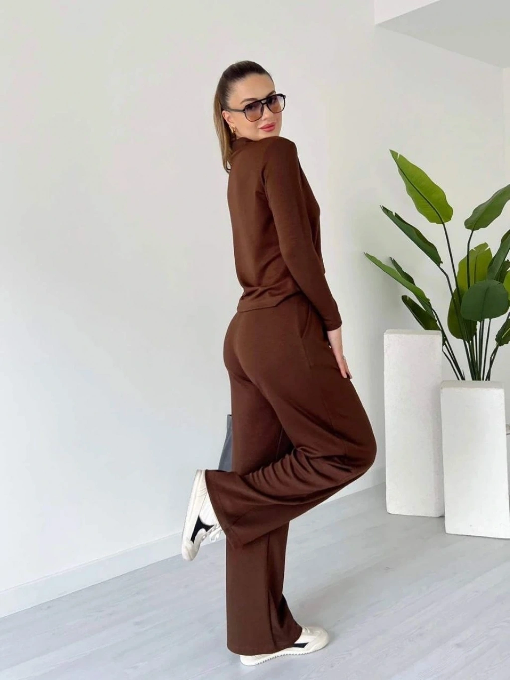 Şıklık ve konforun bir araya geldiği Kadın Polo Yaka Alt Üst Kollu Modal Takım Kahve PT, günlük giyimde ve özel günlerde şıklığınızı tamamlar.