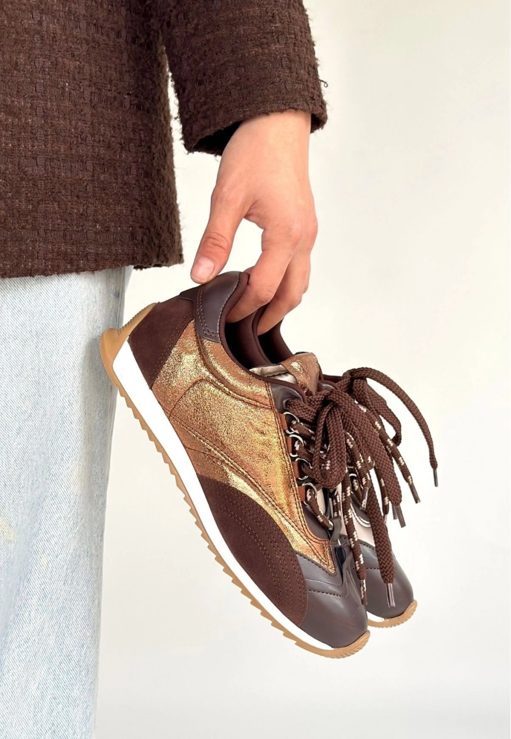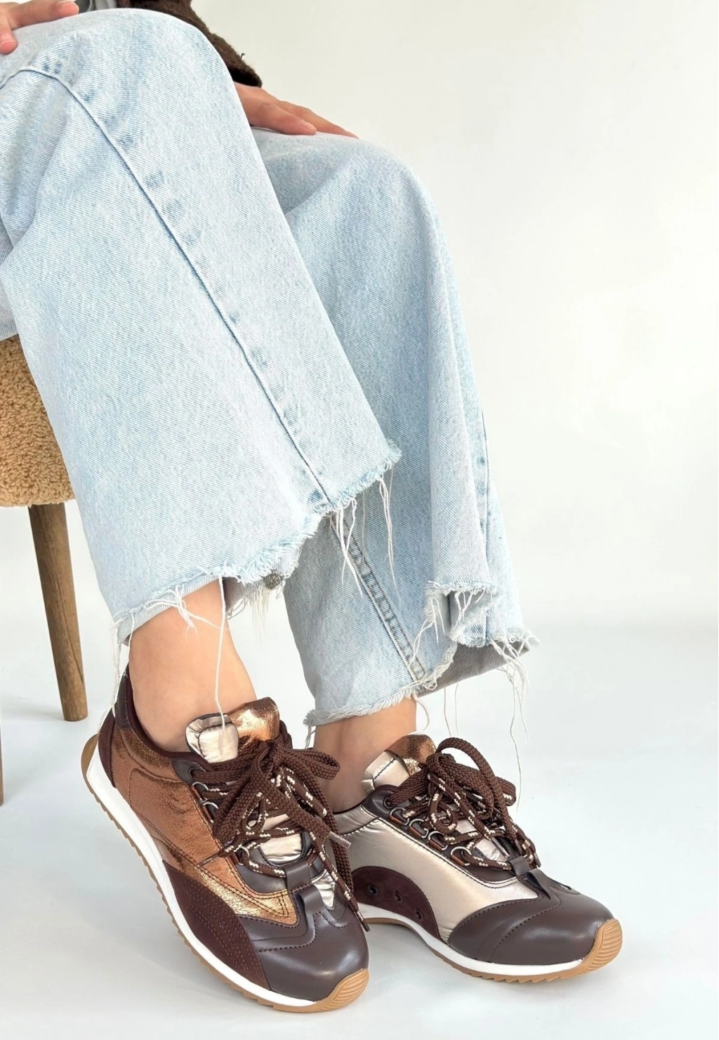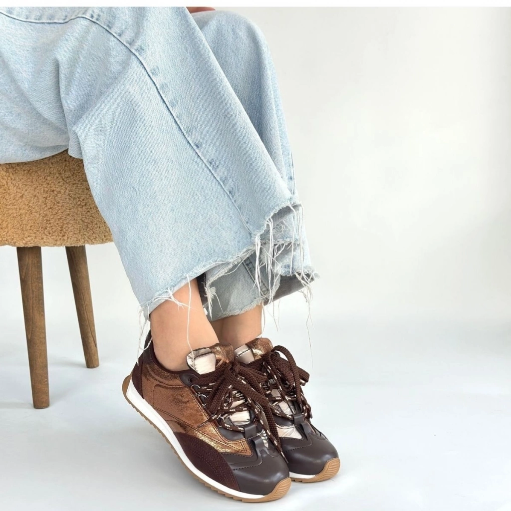 Reat Kahverengi Cilt Bağcıklı Paraşüt Detaylı Spor Ayakkabı