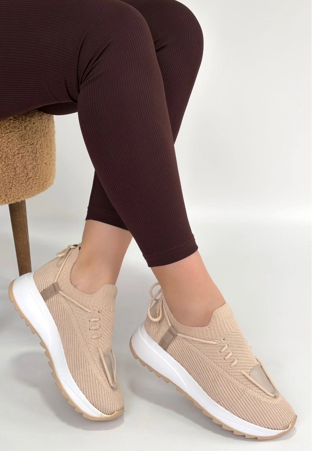 Renji Bej Triko Bağcıklı Spor Ayakkabı