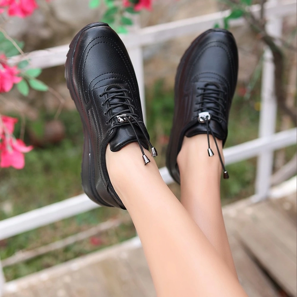 Romy Siyah Cilt Bağcıklı Spor Ayakkabı