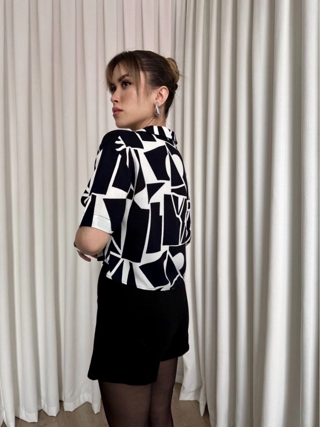 ÇOK SATAN Siyah Beyaz Baskılı Crop Gömlek ile tarzınızı konuşturun!