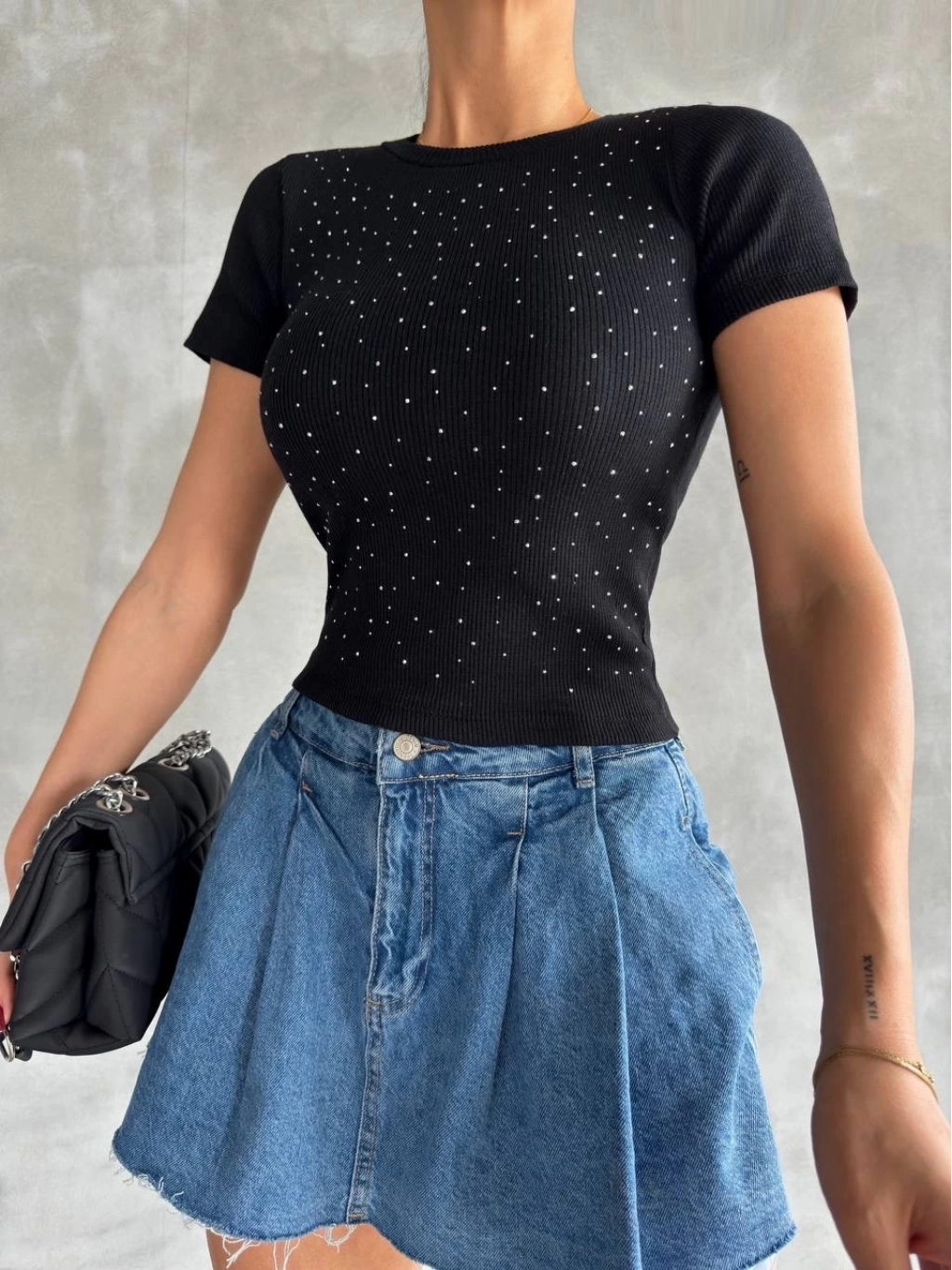 Taş baskılı kaş korse bluz