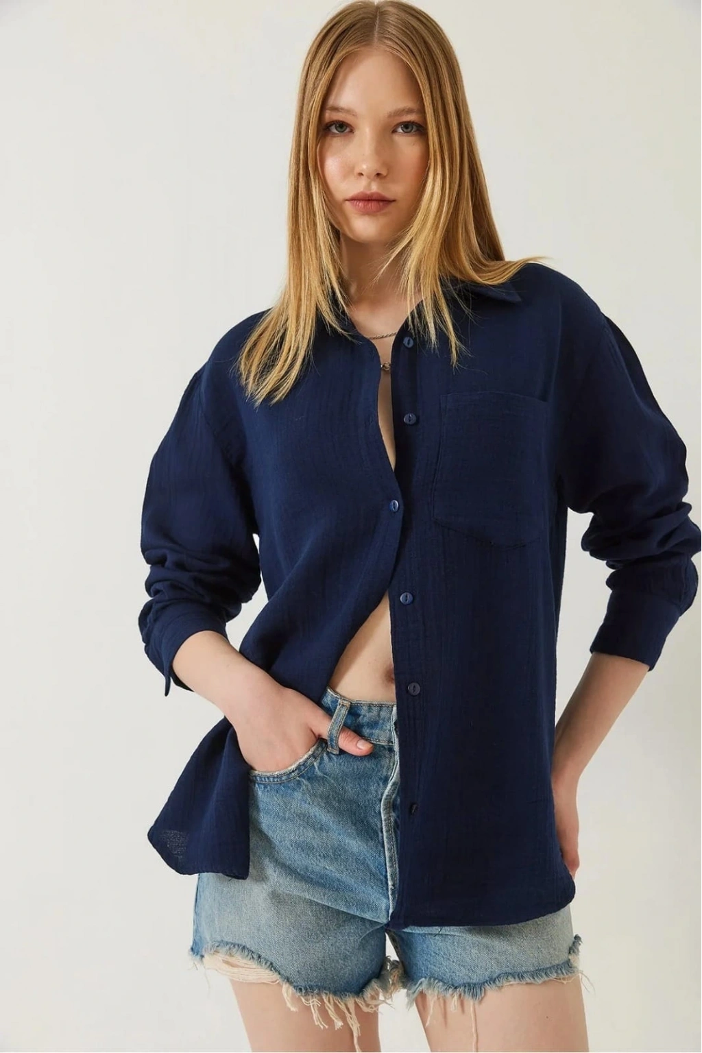Tek cepli müslin gömlek lacivert pt