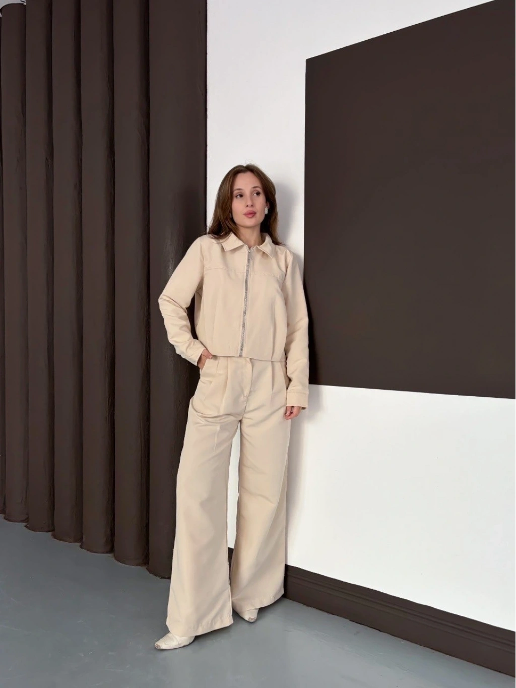 Şık ve rahat tasarımıyla öne çıkan Bej Trenç Takım Alt Üst, gardırobunuzun vazgeçilmezi olmaya aday!