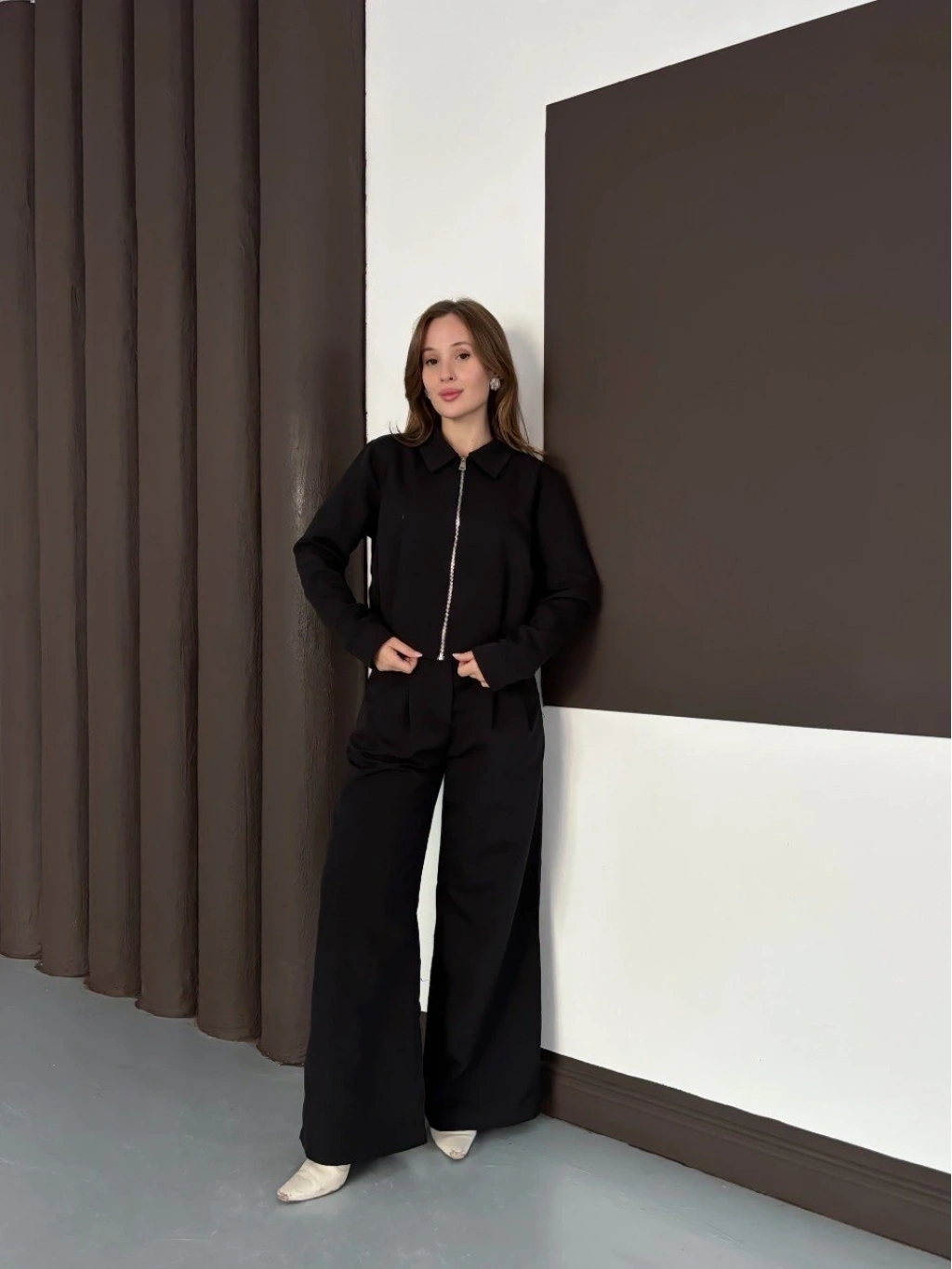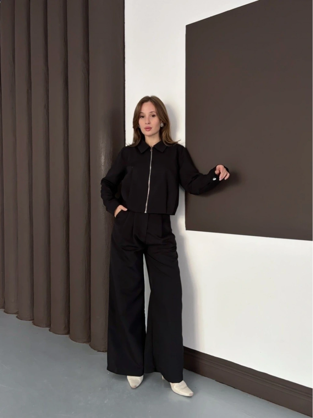 Trenç Takım Alt Üst Siyah Ons, şıklık ve rahatlığı bir arada sunar. Hem günlük kullanıma hem de özel günlerde tercih edebileceğiniz şık bir takım modelidir.