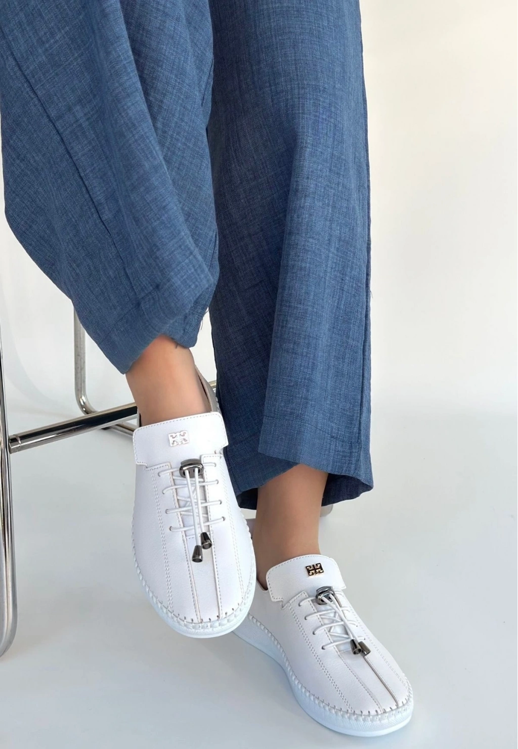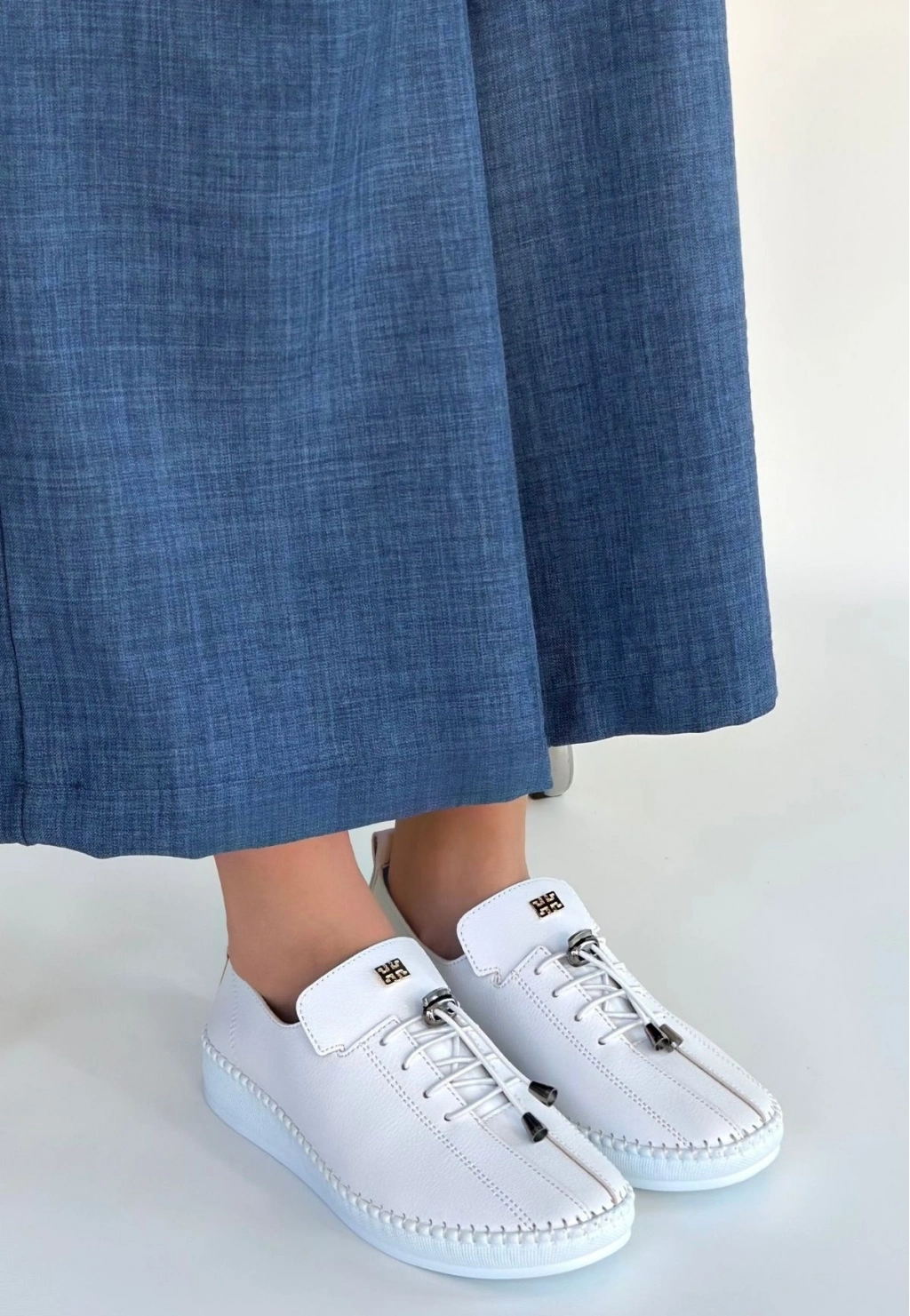 Warte Beyaz Deri Bağcıklı Spor Ayakkabı