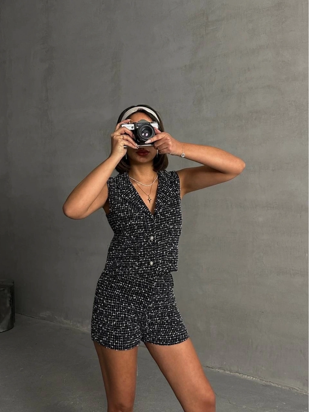 Yelekli şort takım, günlük kullanıma uygun şık bir seçenektir. Hem iş görüşmelerinde hem de arkadaş buluşmalarında tarzınızı yansıtmanızı sağlar.