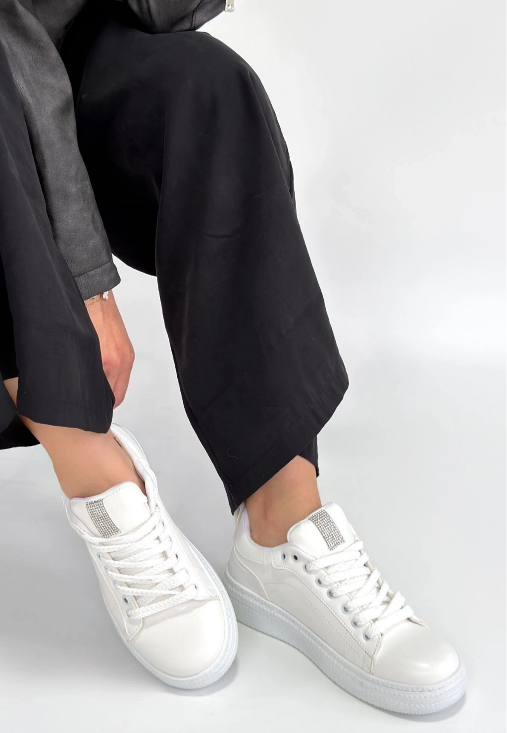 Yier Beyaz Cilt Bağcıklı Spor Ayakkabı