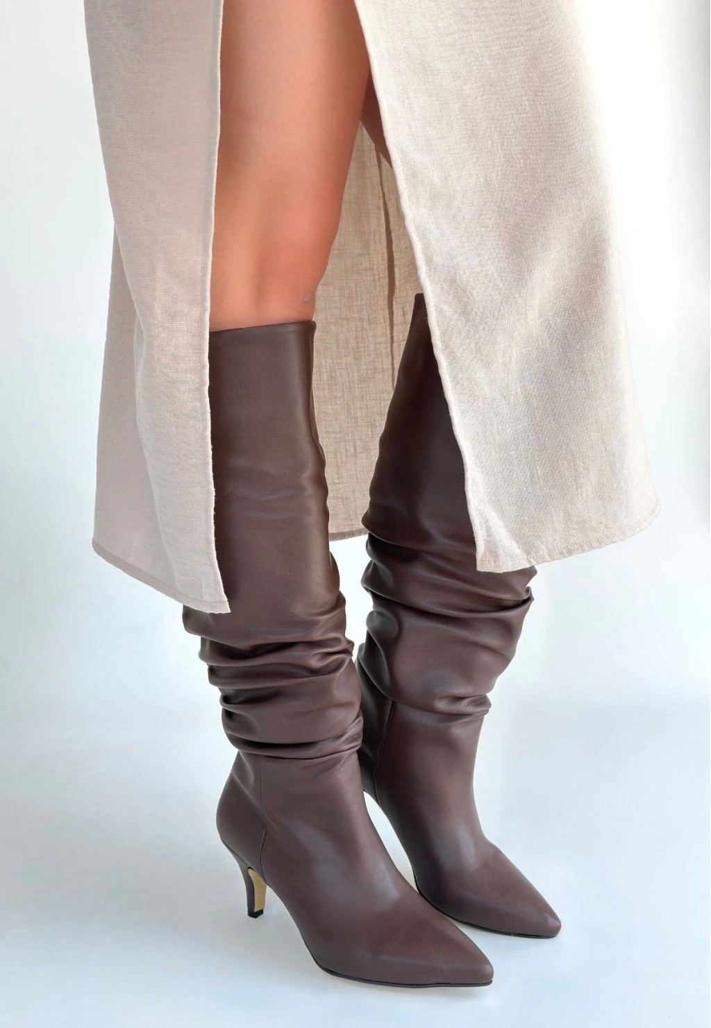 Detay : Topuklu Diz Altı Körüklü Çizme