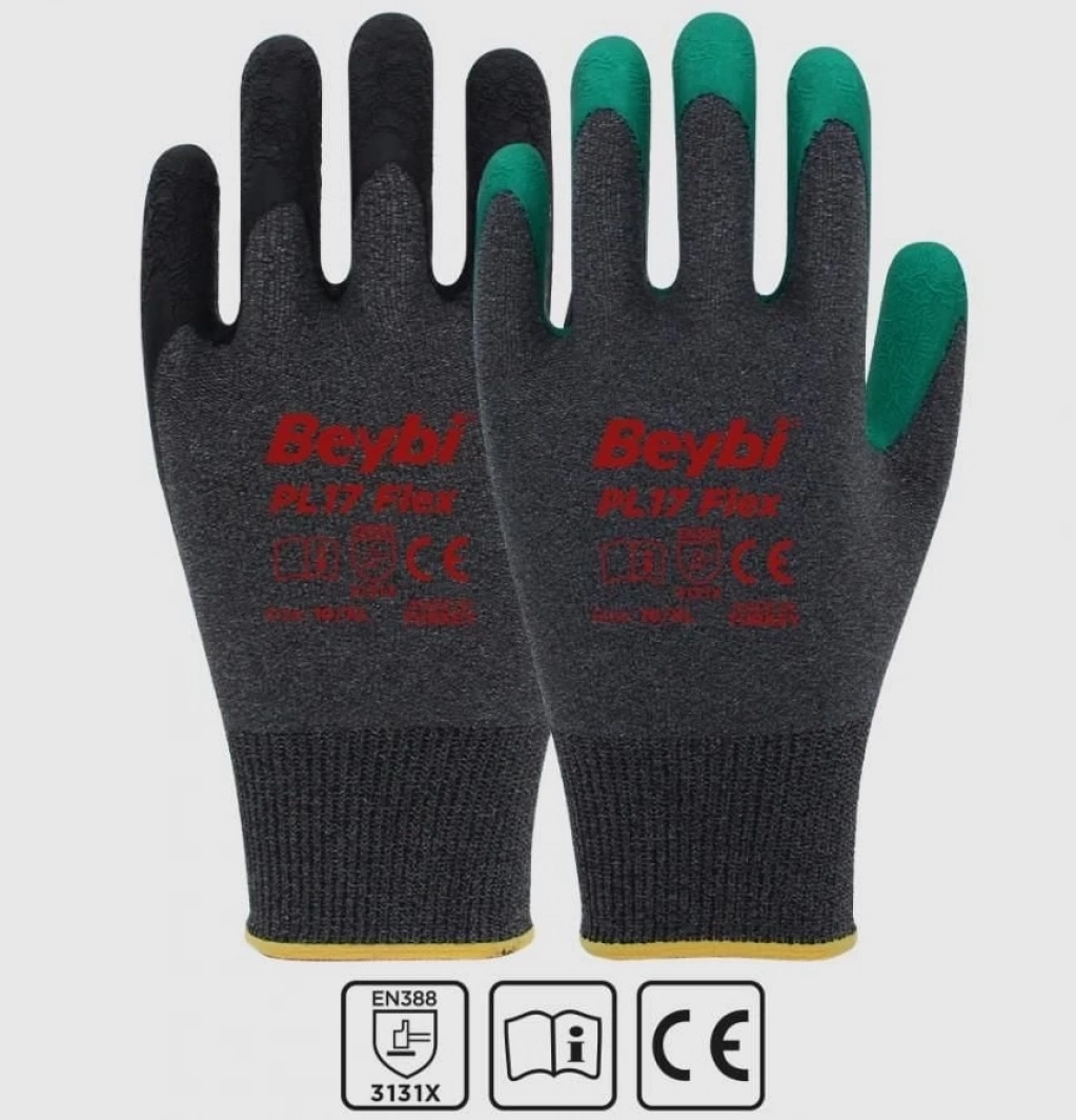 ® Beybi PL17 Flex Likralı İpten Örme Lateks Eldiven NO:9