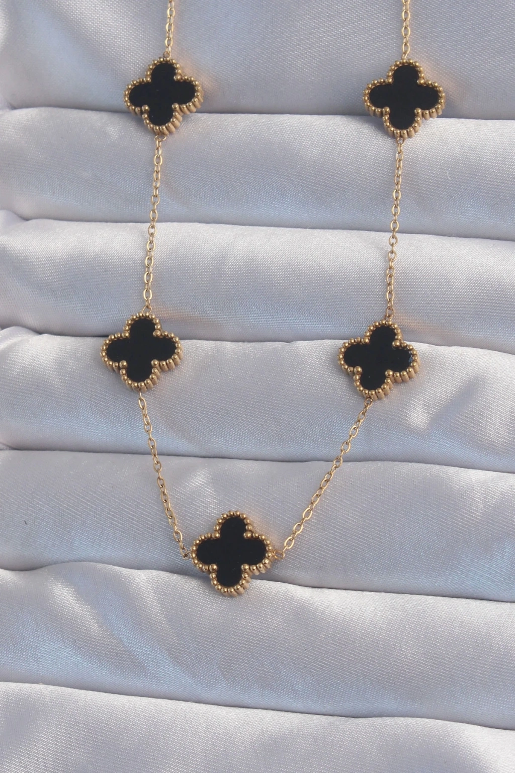 ® 316L Çelik Gold Renk Siyah Mineli Yonca Kolye