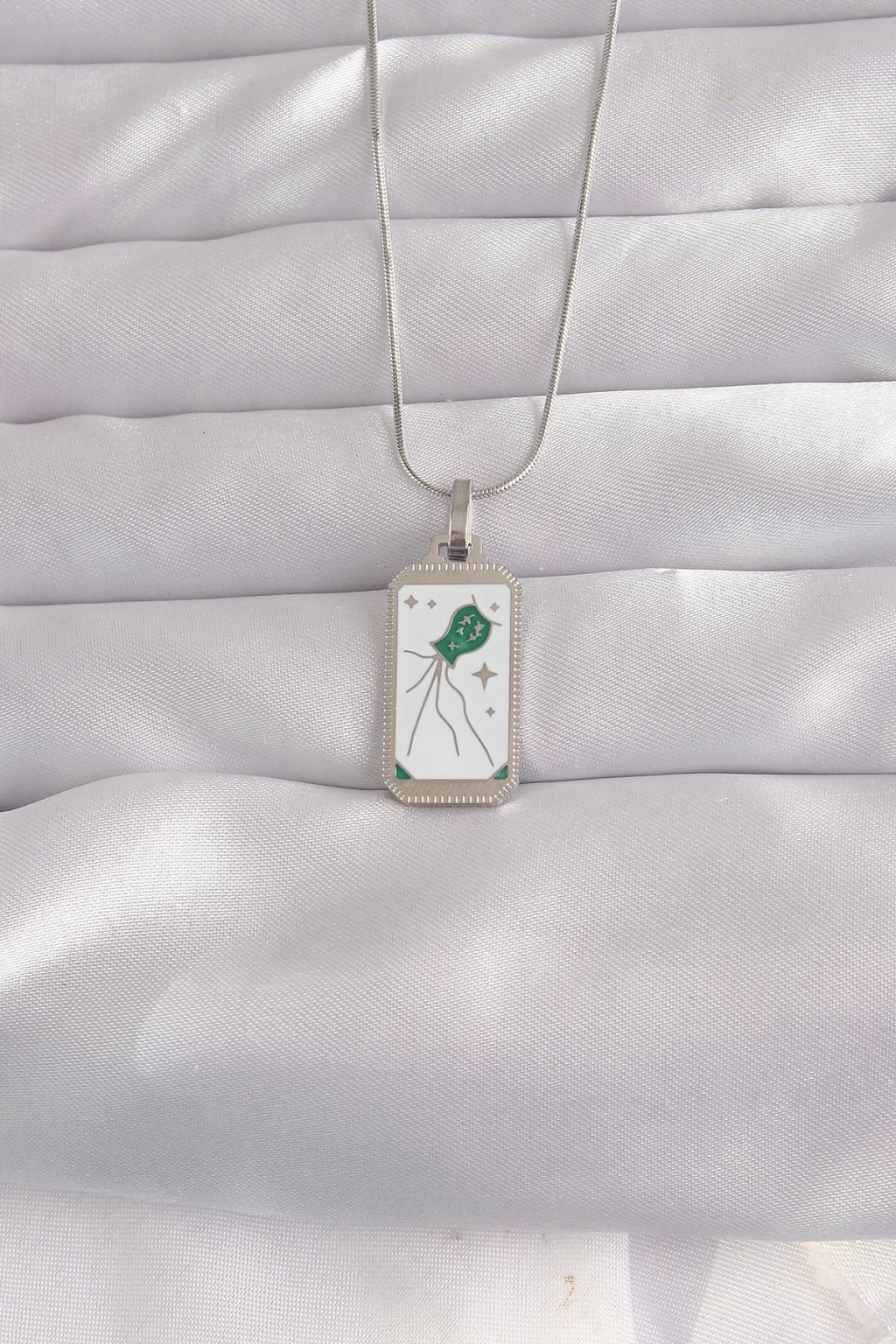 ® 316L Çelik Gümüş Renk Beyaz Mineli Tarot Kolye