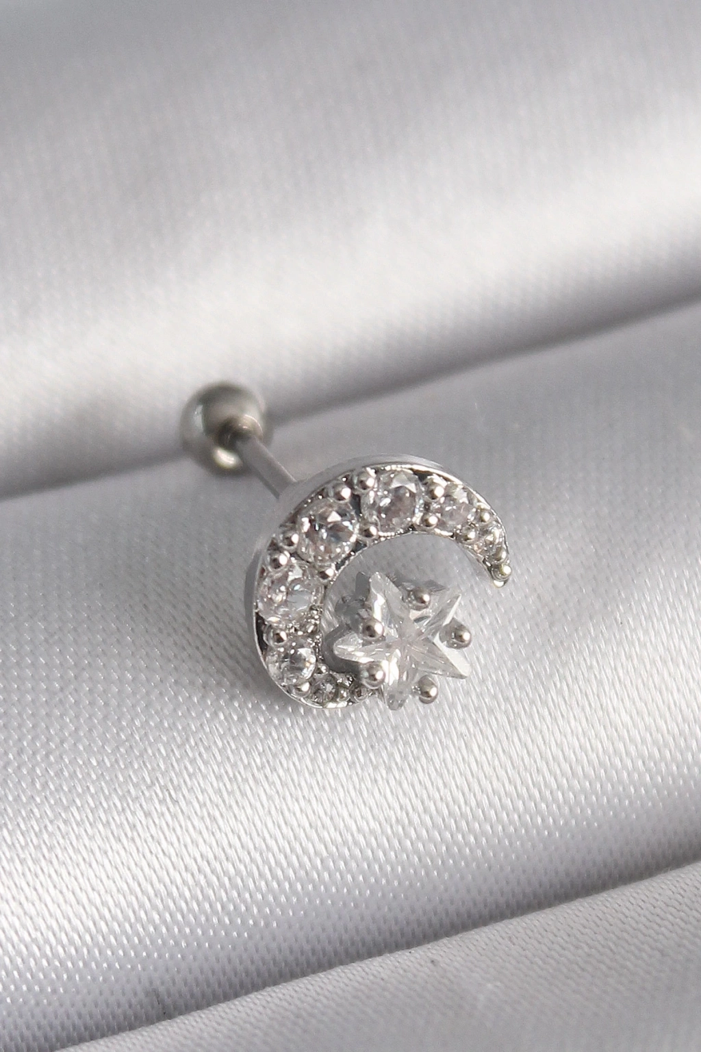 ® 316L Çelik Gümüş Renk Zirkon Taşlı Ay Yıldız Tragus Piercing