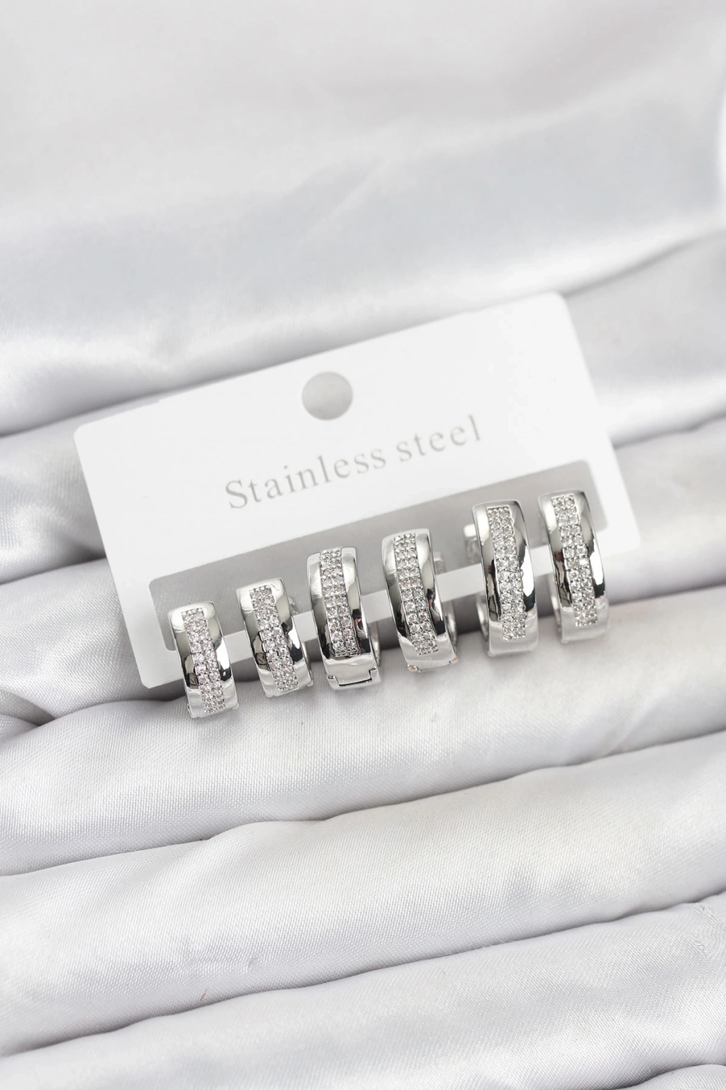 ® 316L Çelik Gümüş Renk Zirkon Taşlı Halka Küpe Seti